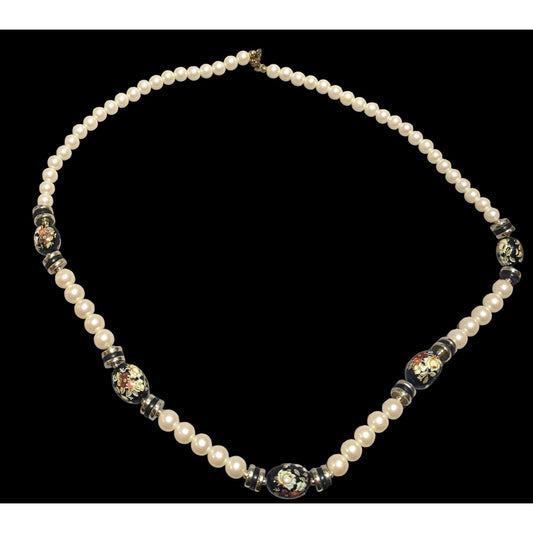 Vintage Cream And Black Pearl Floral Necklace