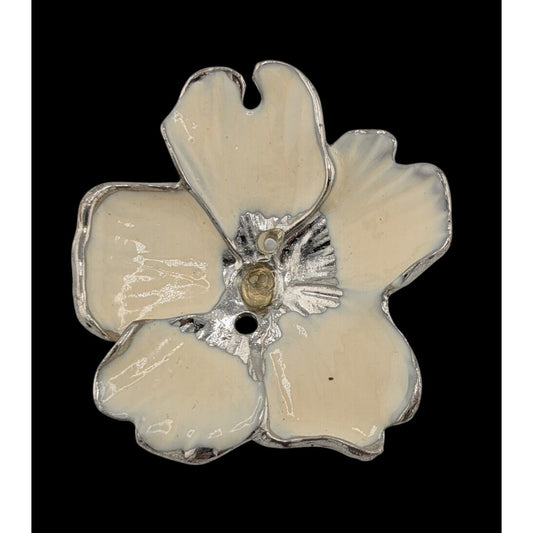 Vintage Floral Brooch Silver Tone With Cream Enamel (Missing Piece)