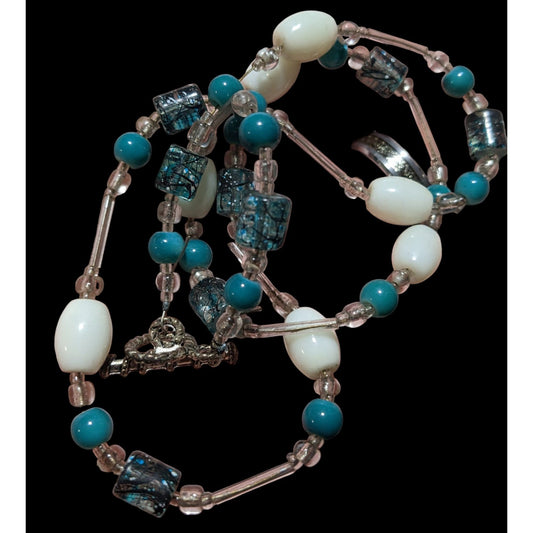 Blue And White Glass Beaded Toggle Necklace