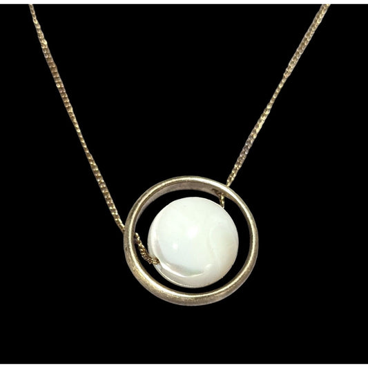 White Glass Swirl Marble Spinner Necklace