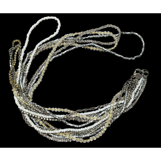 Multilayer Clear And White Glass Beaded Necklace