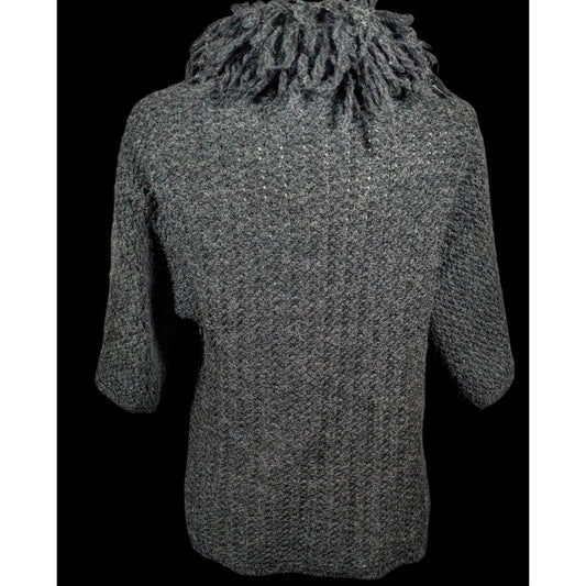 Kenar Italy Vintage Open Front Black Fringe Neck Cardigan Size Medium