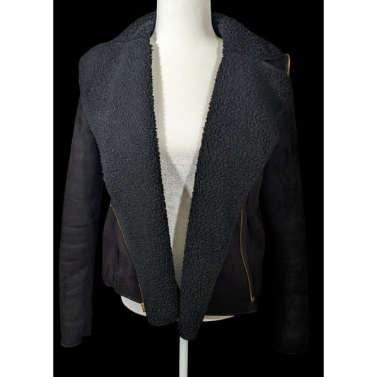 Milk Faux Suede Black Zipper Accent Moto Jacket Size Small