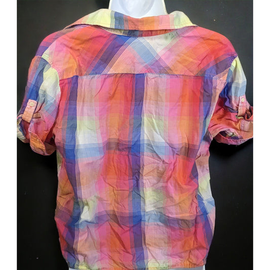 American Eagle Outfitters Rainbow Plaid Cropped Blouse