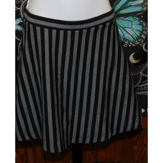 Forever 21 Gothic Black And GreyStriped Skater Skirt