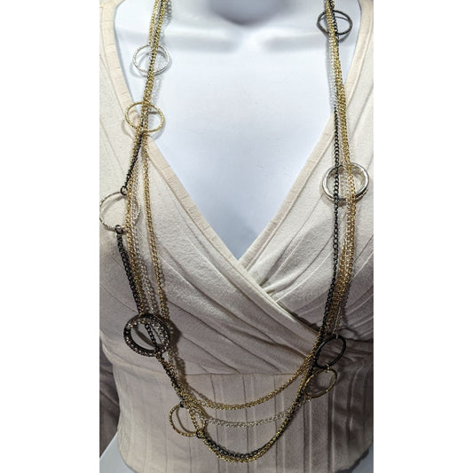 Daisy Fuentes Multi Metallic Layered Chain Necklace With Rhinestone Rings