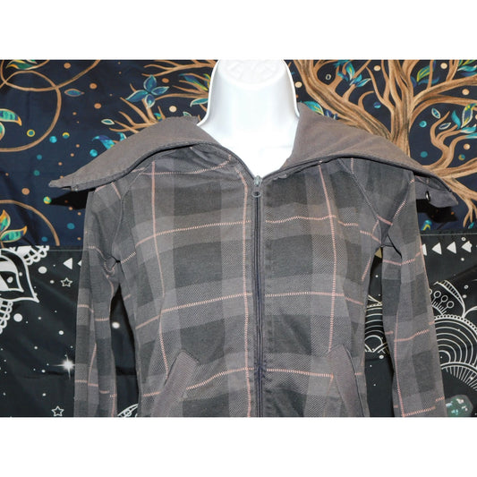 Urban Behaviour Pink And Grey Plaid Zip Up Sweater