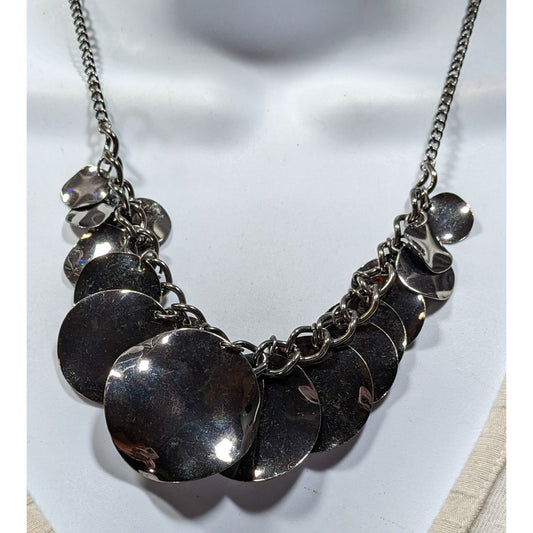 Express Abstract Graduated Disc Fringe Necklace Gunmetal Tone