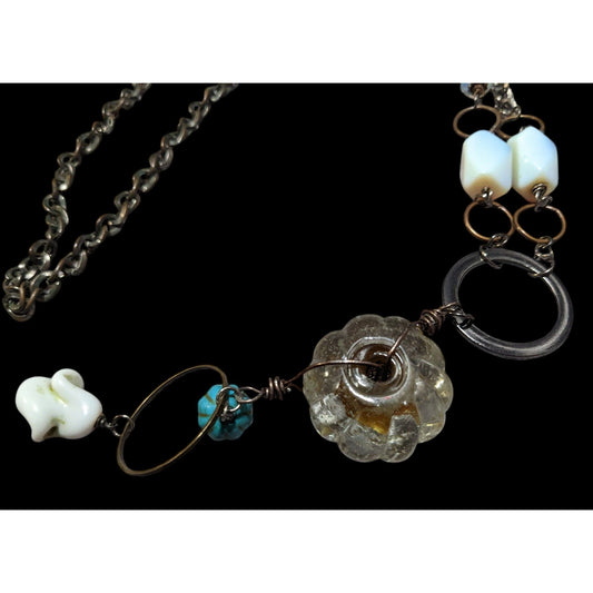 Handmade Upcycled Chunky Glass And Moonstone Beaded Chain Necklace