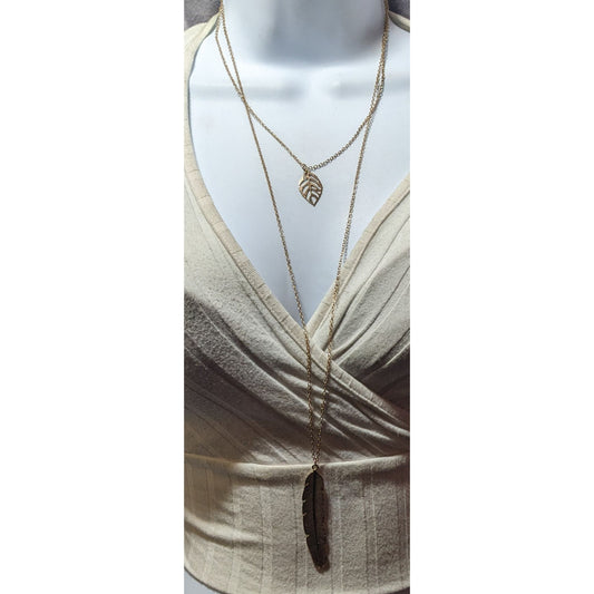 Bohemian Gold Tone Multilayer Feather And Leaf Pendant Necklace