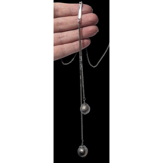 Express Y2K Silver Tone Metallic Ball Drop Necklace