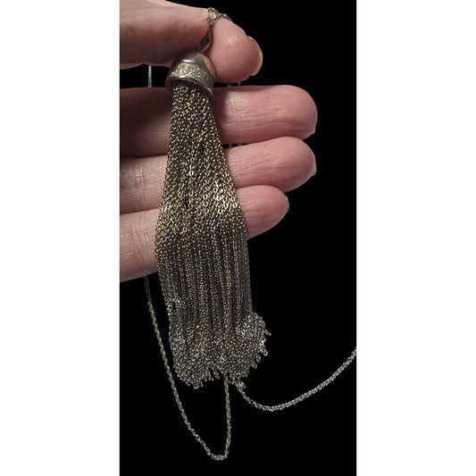 Loft Silver Tone Fine Chain Glitter Tassel Necklace