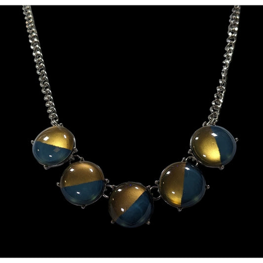 Charming Charlie Blue And Yellow Medallion Fringe Necklace
