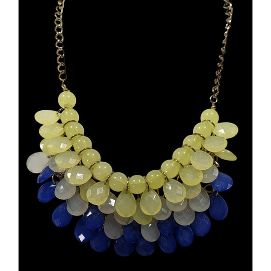 Retro Blue And Yellow Beaded Bib Statement Necklace