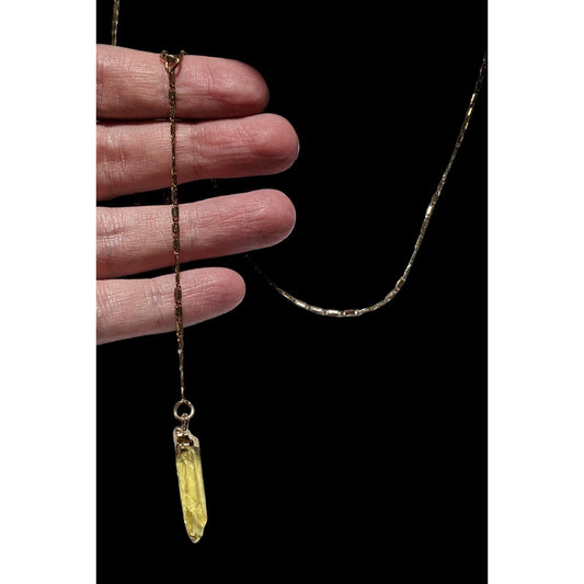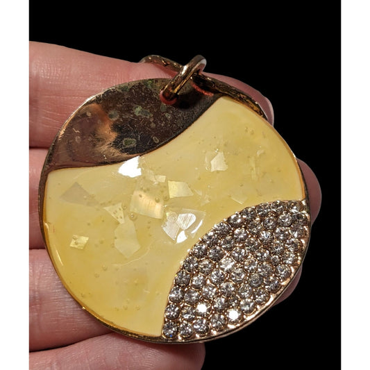 Gold And Yellow Enamel Rhinestone Pendant Necklace
