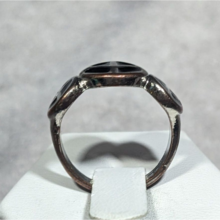 90s Style Triple Peace Sign Black And Silver Tone Enamel Filled Ring Size 7 1/2