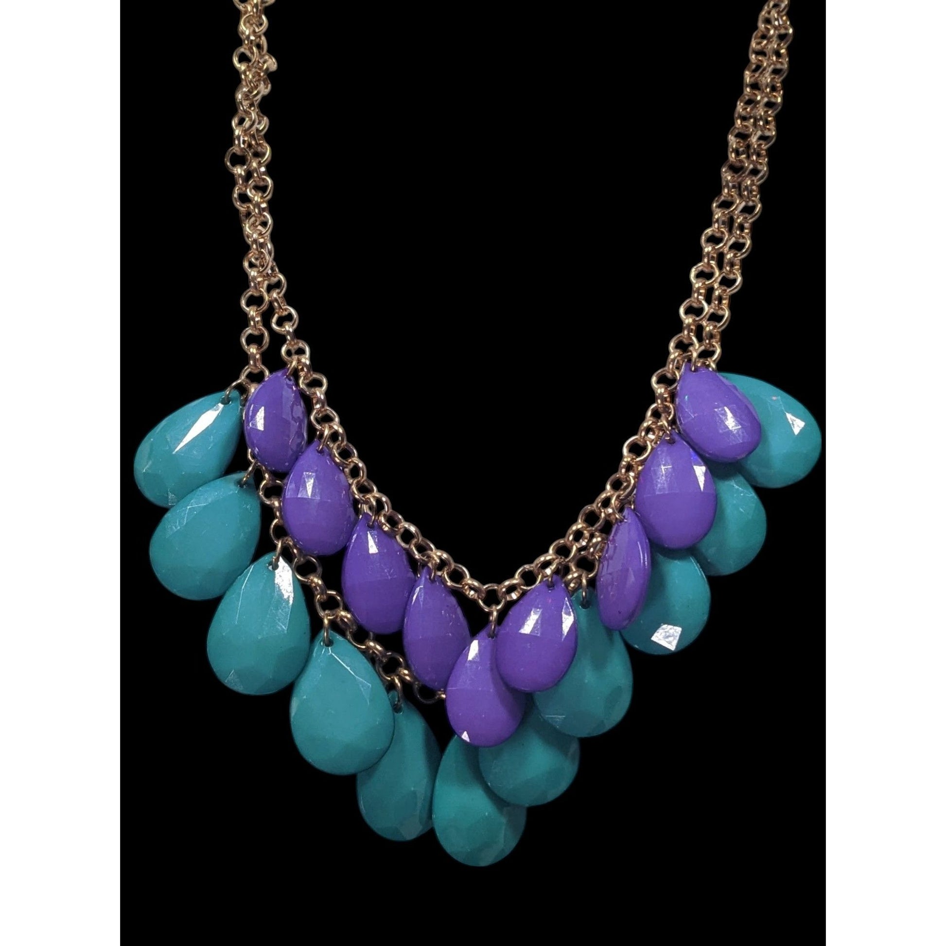 90s Themed Purple And Turquoise Gemmed Layered Fringe Necklace