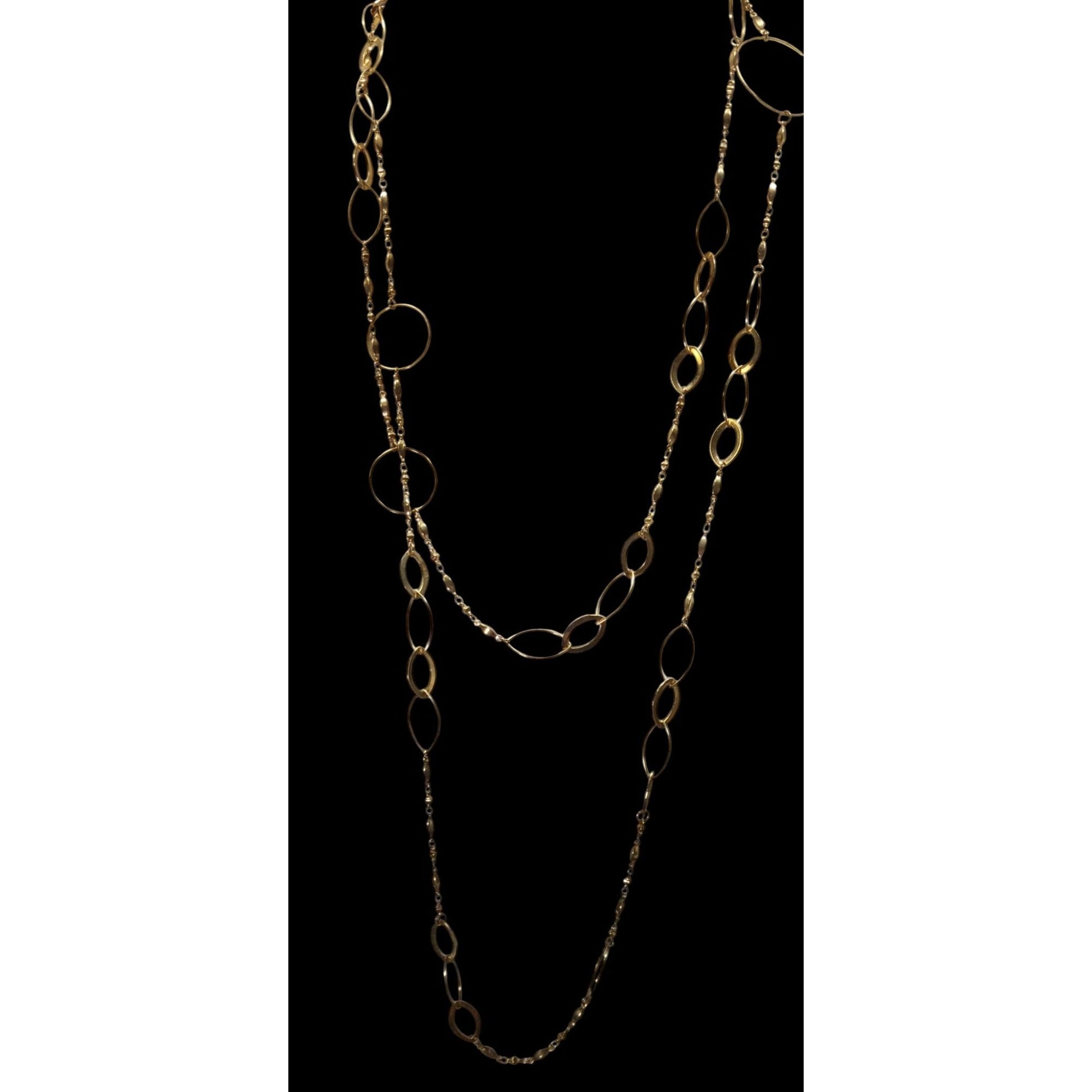 This elegant long necklace showcases a harmonious mix of open circles and oval links, gleaming in a lustrous gold-tone finish. At 38 inches, it drapes beautifully, adding sophistication and charm to any outfit. Perfectly versatile, it can be styled as a single long strand or doubled for a layered look.