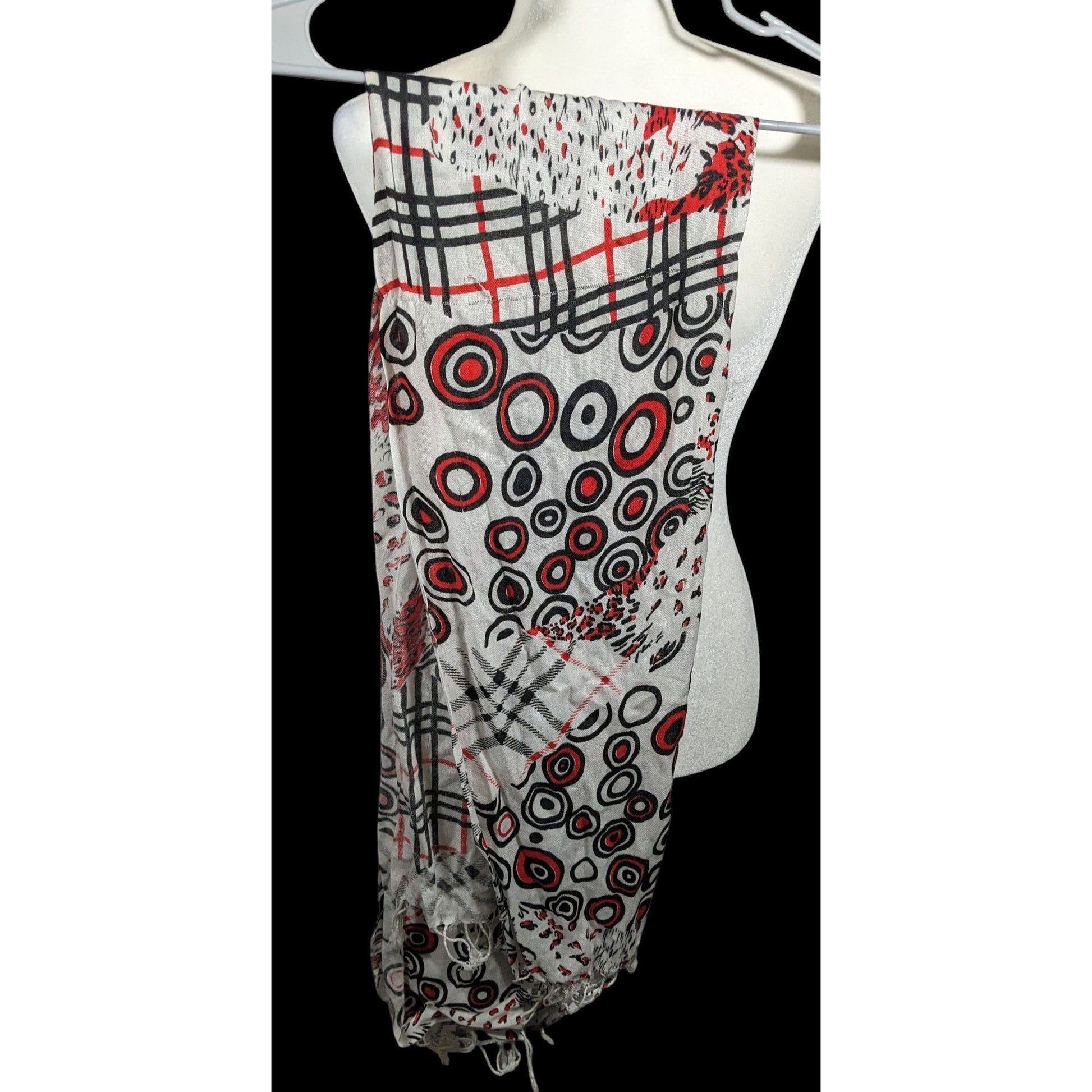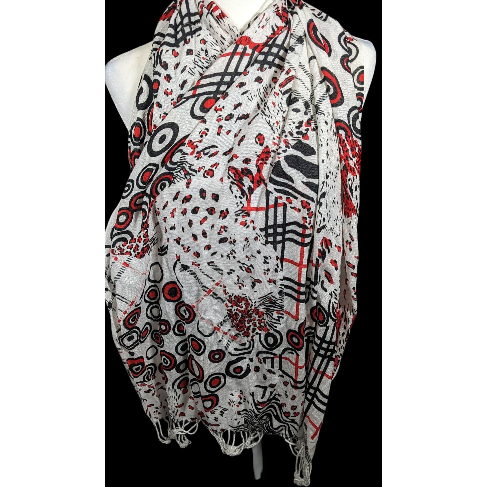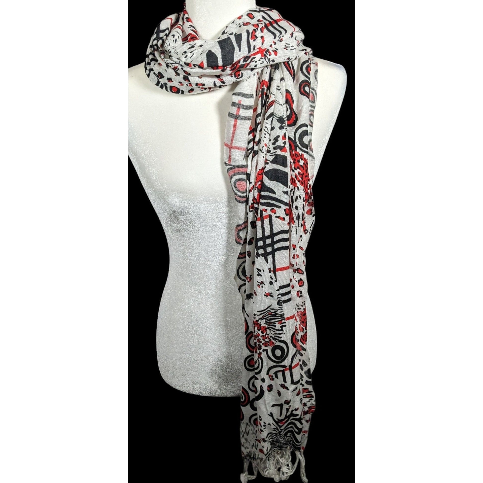 Add a touch of elegance to your wardrobe with this Abstract Punk Pashmina Scarf. Featuring a striking red, white, and black design, this scarf effortlessly combines style and comfort for any occasion.