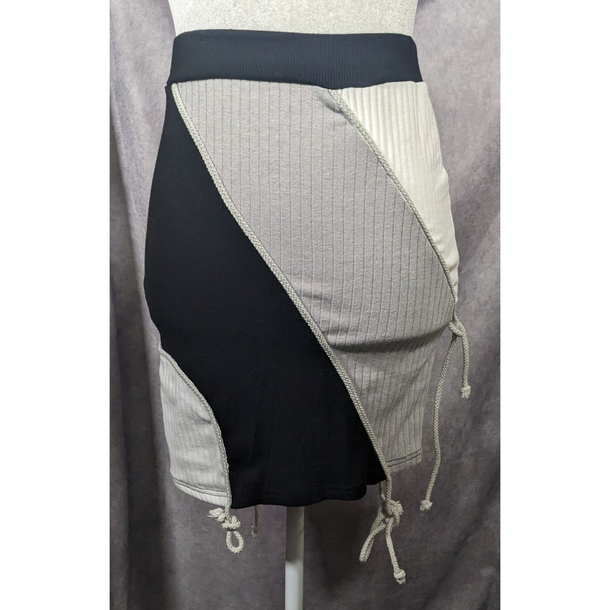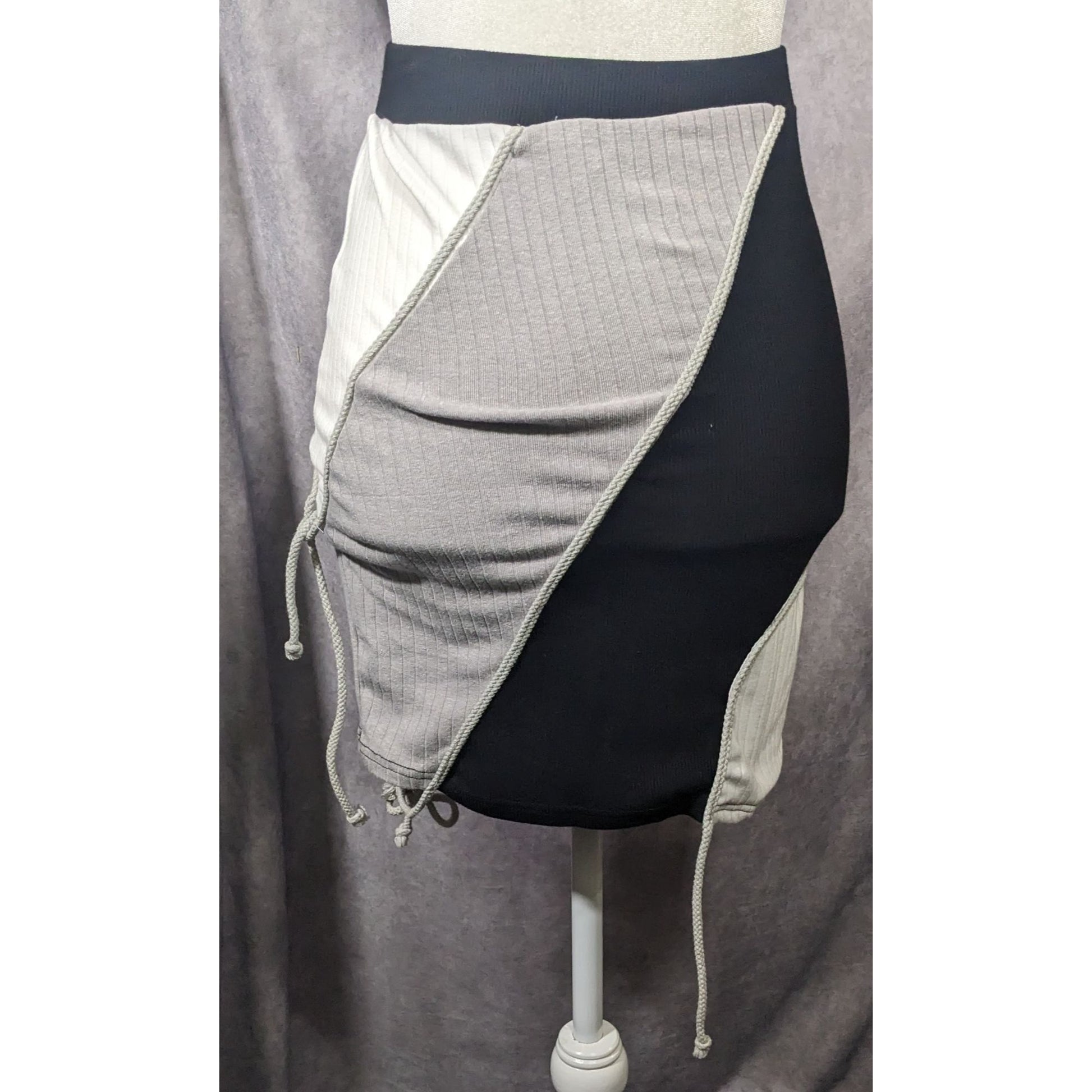 Akira Black White And Grey Diagonal Colour Block Ribbed Skirt Size Small