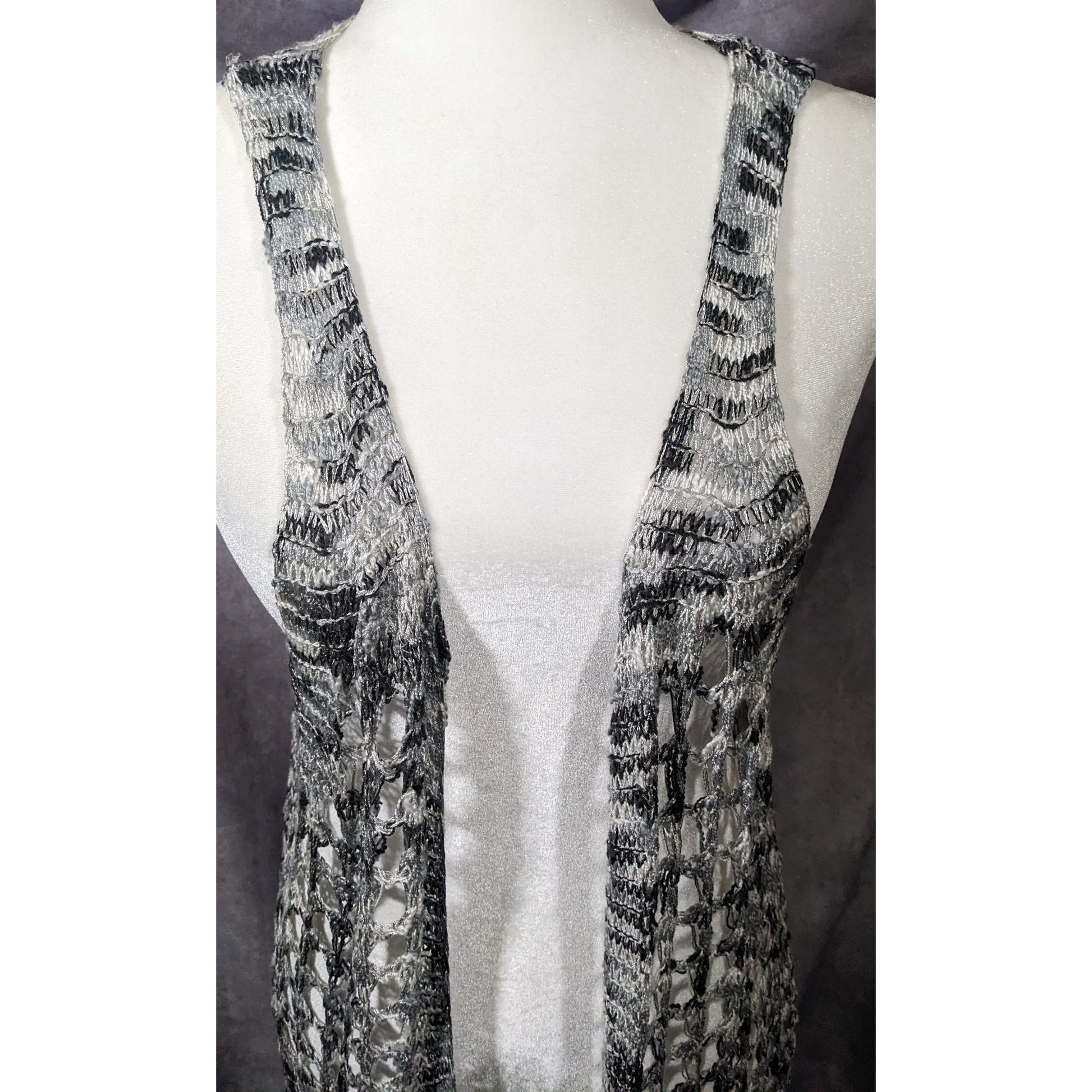 And'Or Knit Crochet Fringe Vest With Lace Details Size S/M