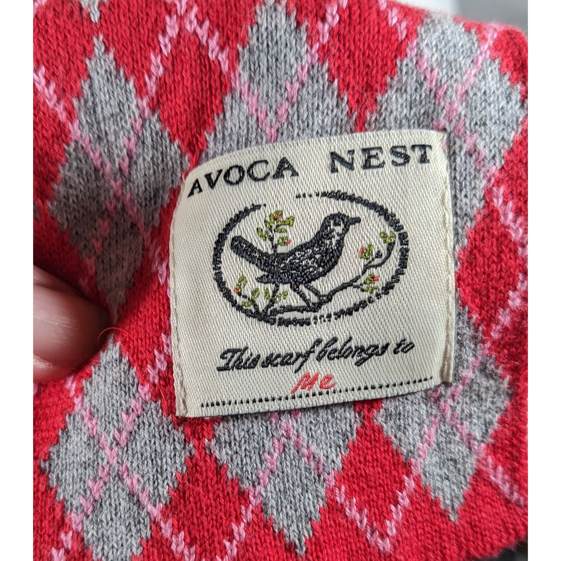 Avoca Nest Red And Grey Argyle Cotton Scarf