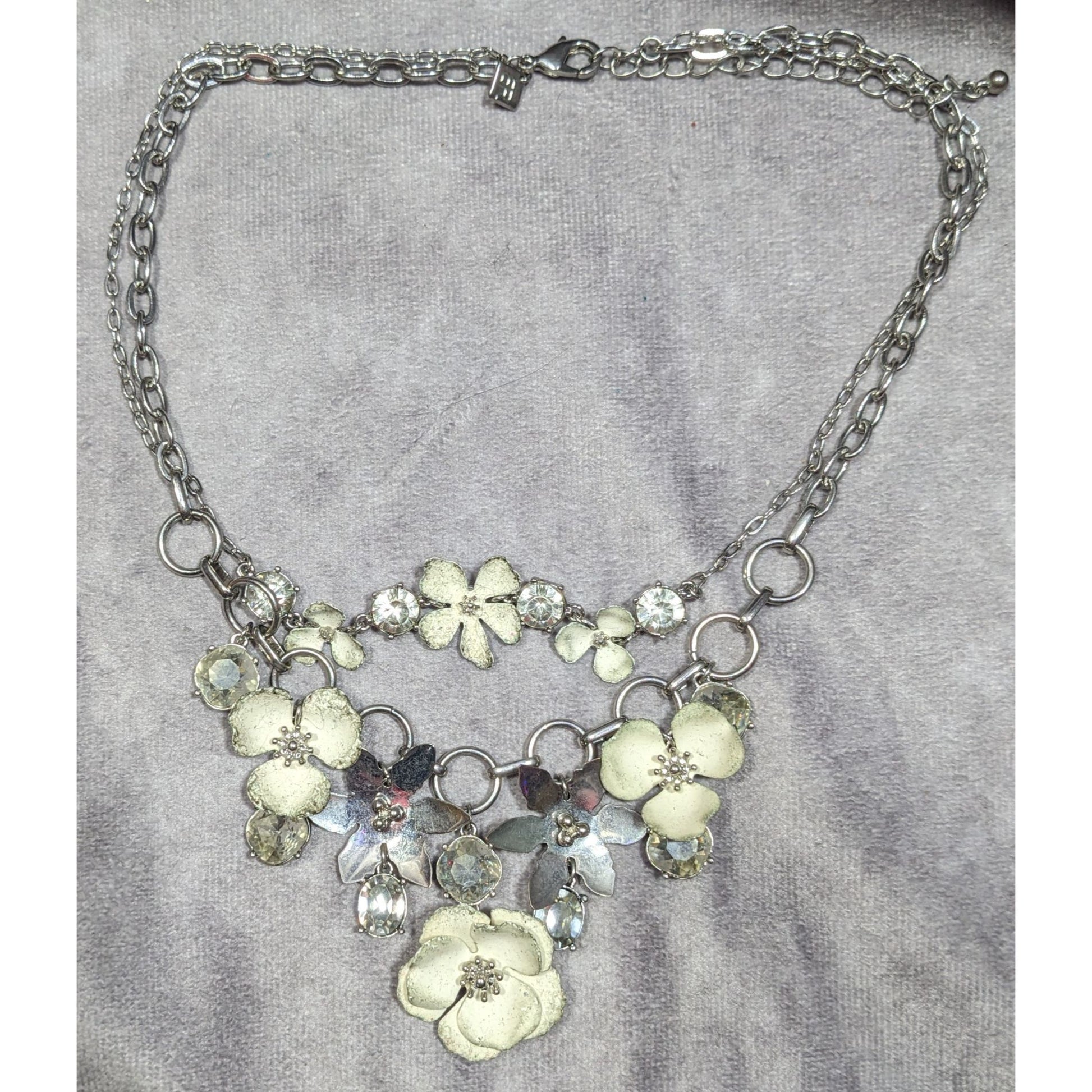 Banana Republic Preppy Floral White And Silver Tone Multilayer Necklace