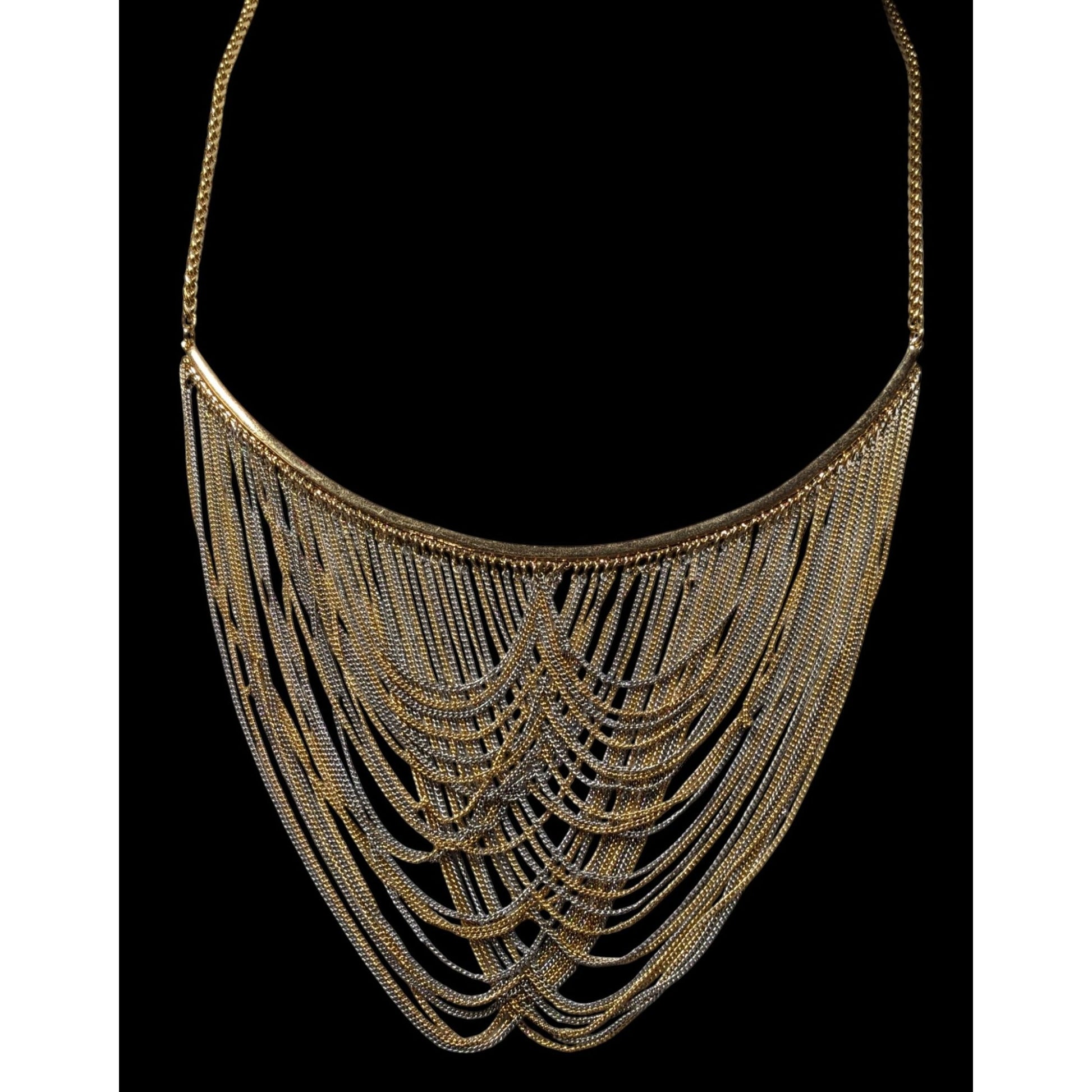 BCBGMAXAZRIA Draped Gold & Silver Tone Chain Bib Statement Necklace