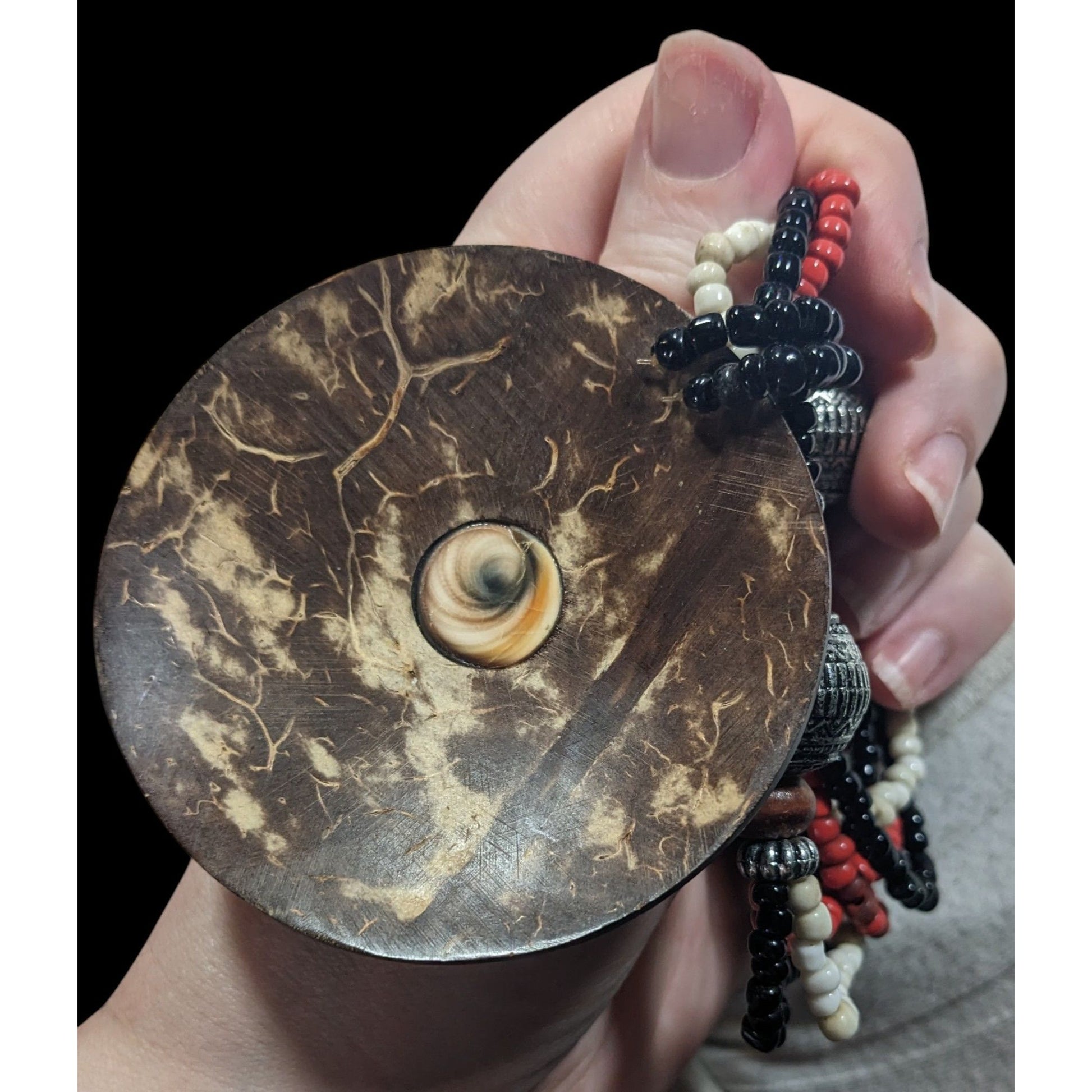 Beachy Bohemian Coco Wood Shell Pendant Necklace With Shell Inlay And Glass Beads