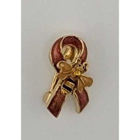 Bee On Ribbon Red And Yellow Enamel Brooch