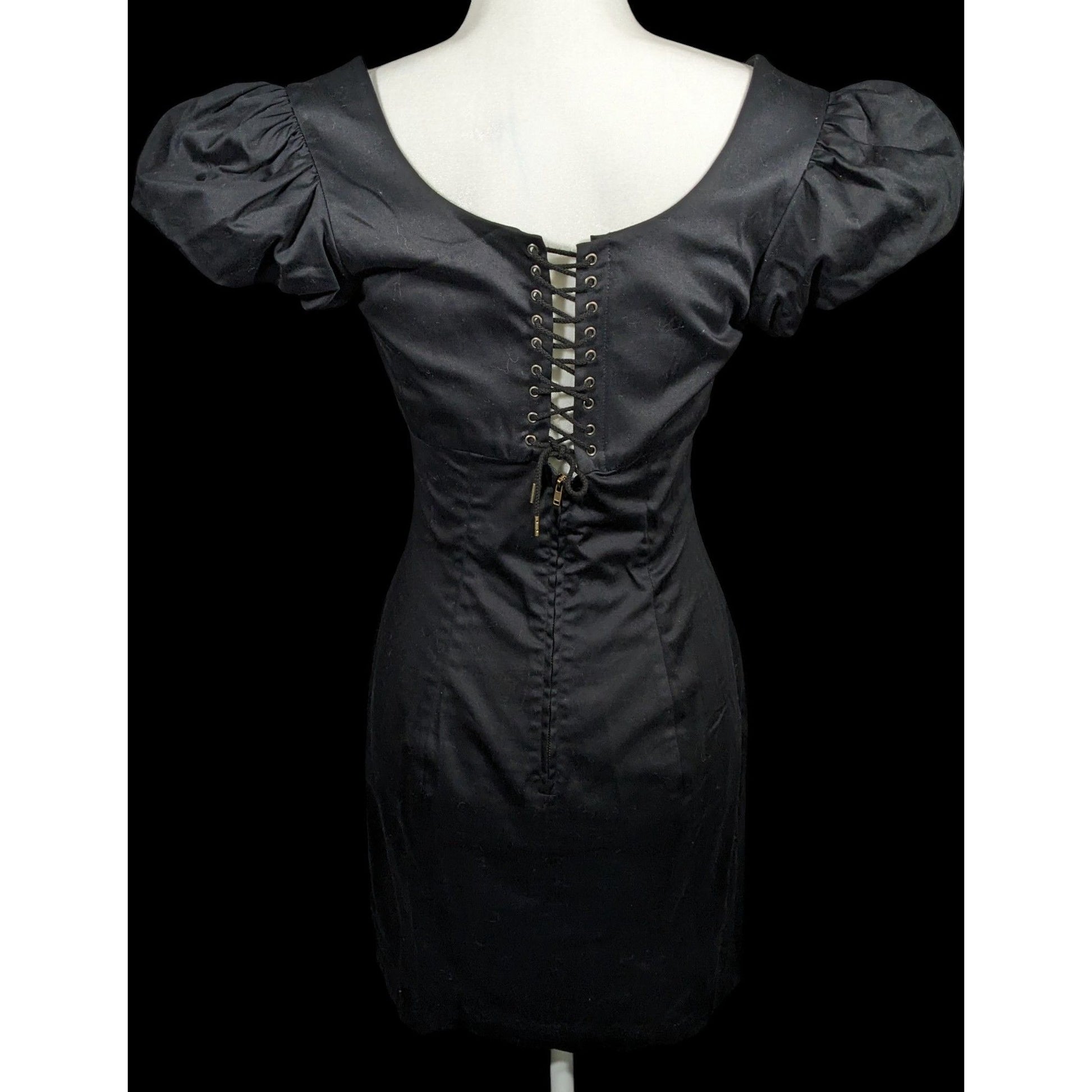 Betsey Johnson Gothic Corset Back Puff Sleeve Black Mini Dress Size 6