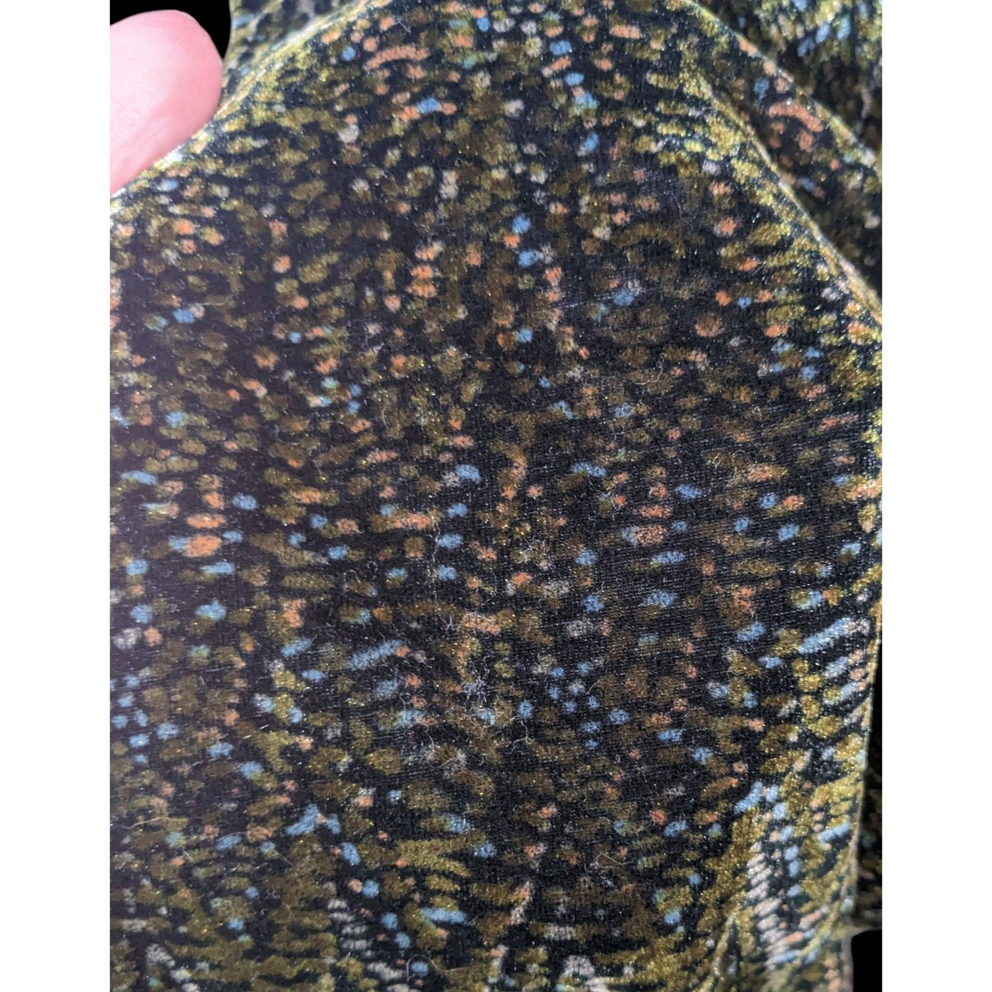 Elevate your style with this luxurious black and green speckled velvet-like scarf, perfect for any occasion. Its soft texture and unique design make it a must-have accessory for fashion-forward individuals.