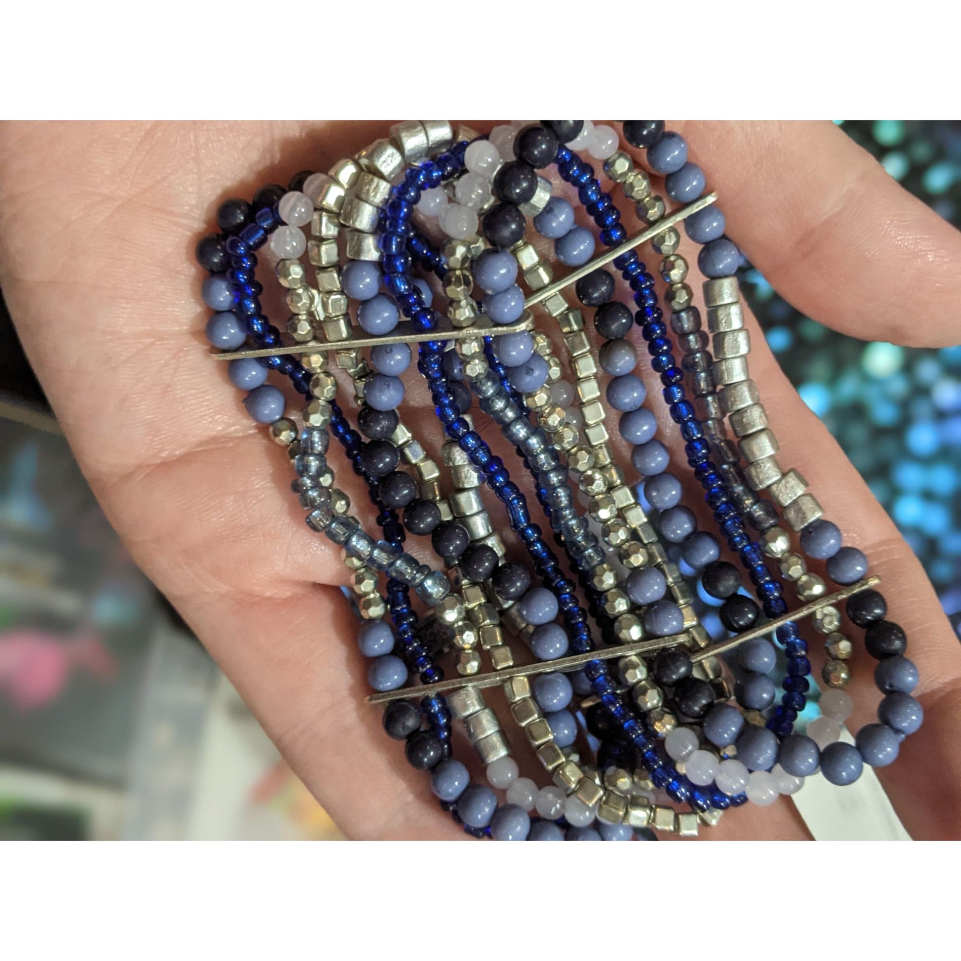 Elegant multi-strand bracelet featuring blue and silver tones. Perfect for adding a touch of sophistication to any outfit. Versatile and stylish, it complements both casual and formal looks.