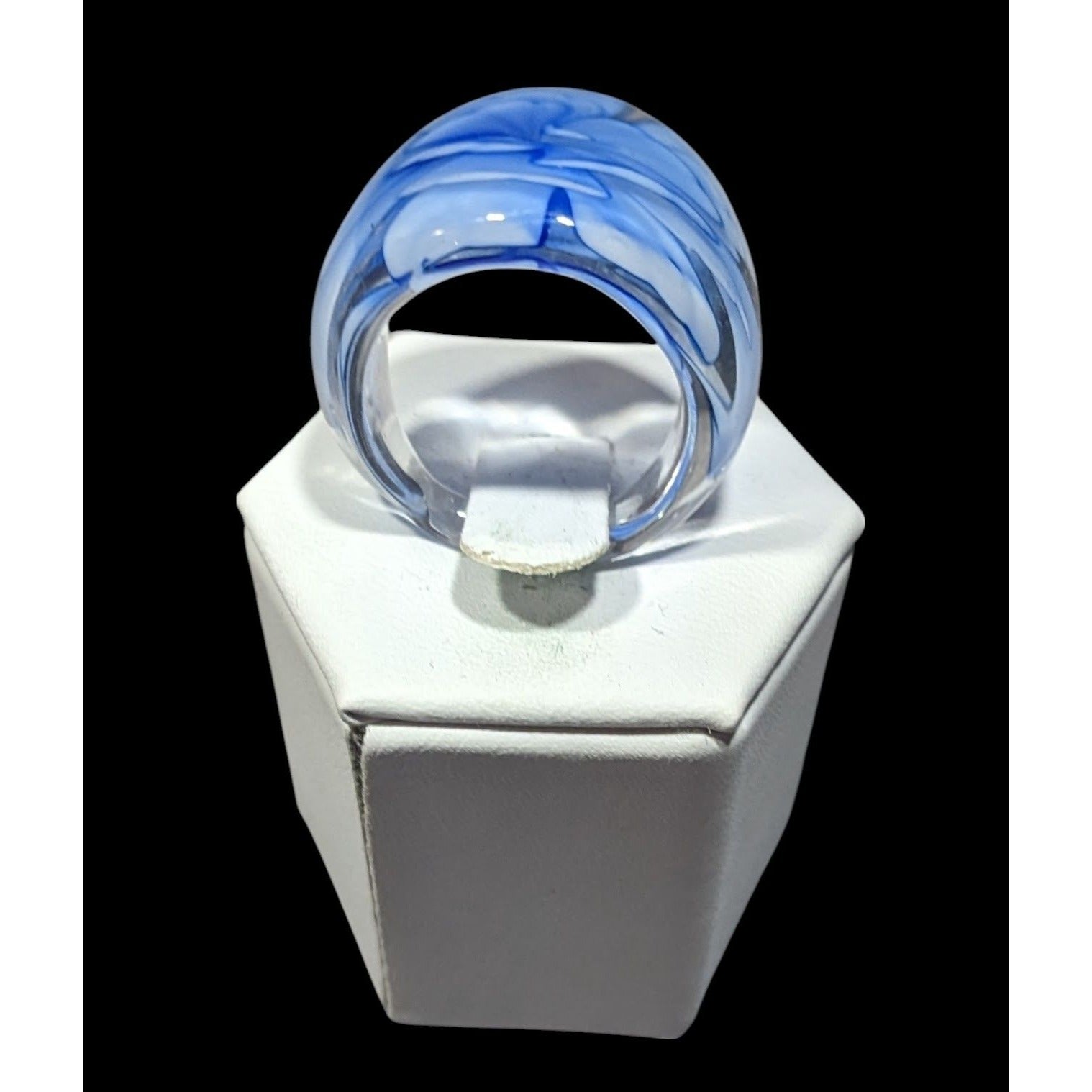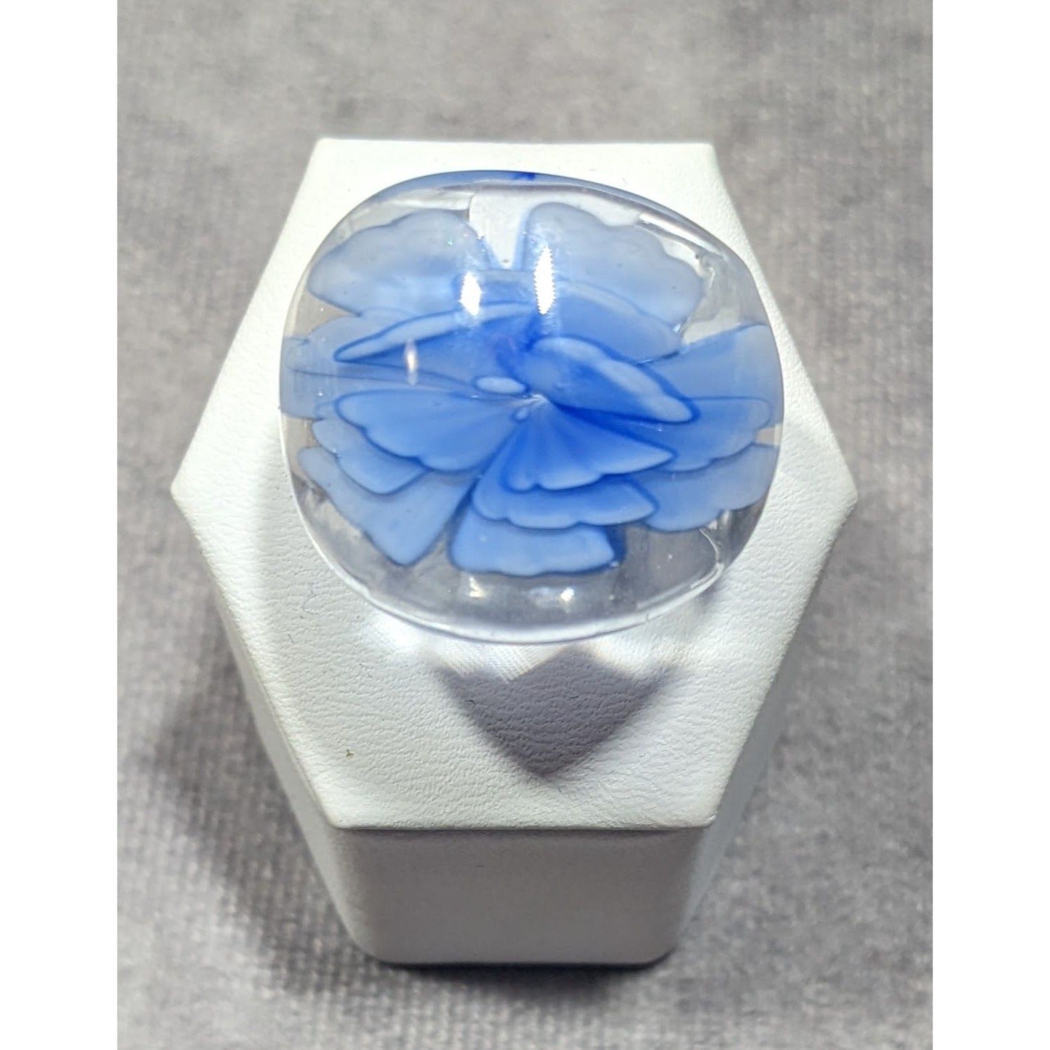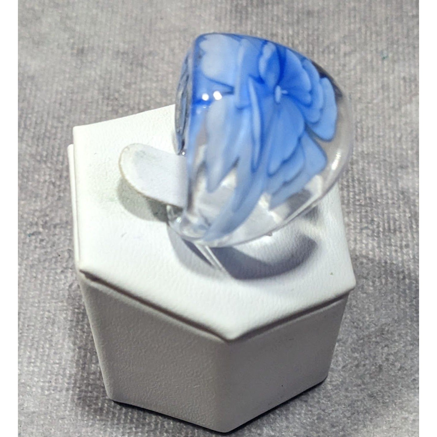 This enchanting Blue Fairycore Lampwork Glass Ring is a unique statement piece. Handcrafted with attention to detail, it features intricate glasswork in a mystical blue hue, perfect for adding a touch of whimsy to any outfit.