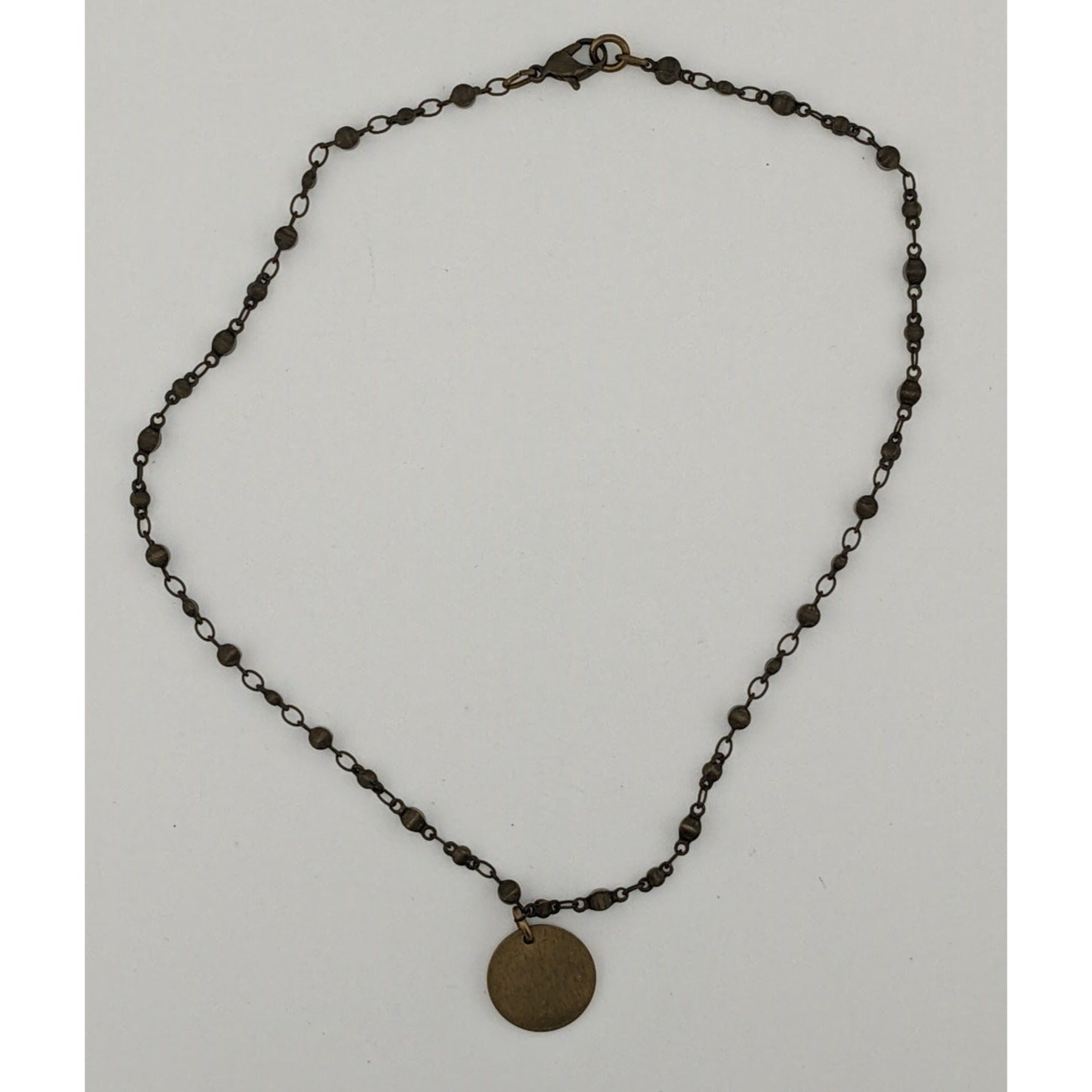 Bohemian Brass Beaded Necklace With Gold Tone Disc Pendant