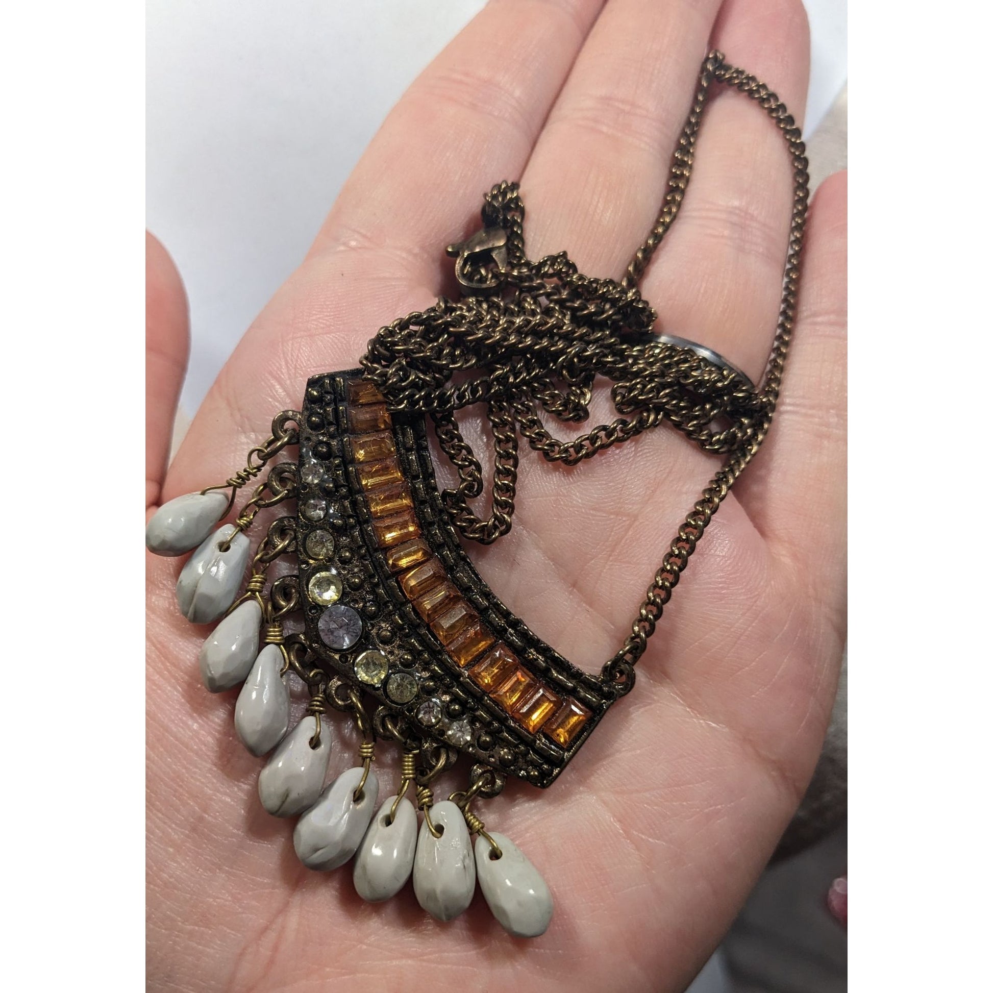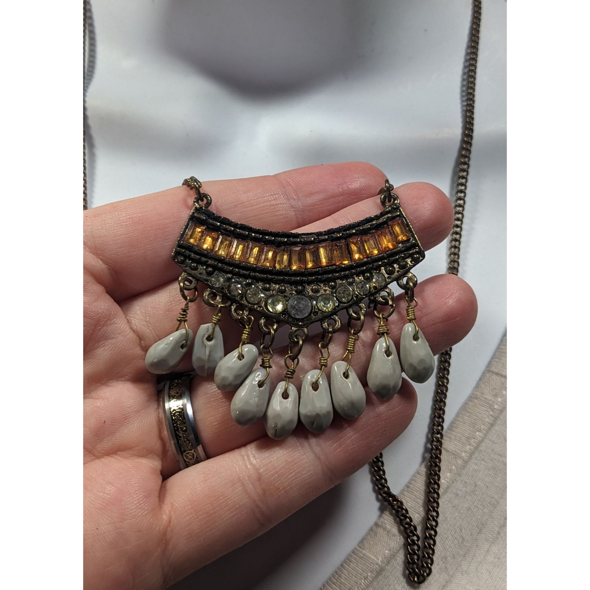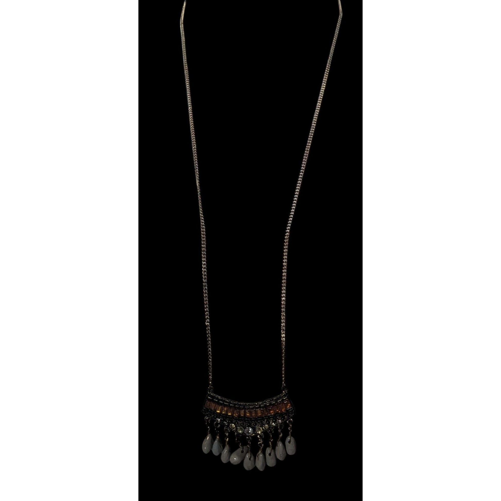 Bohemian Indie Rhinestone Gemmed Fringe Pendant Necklace