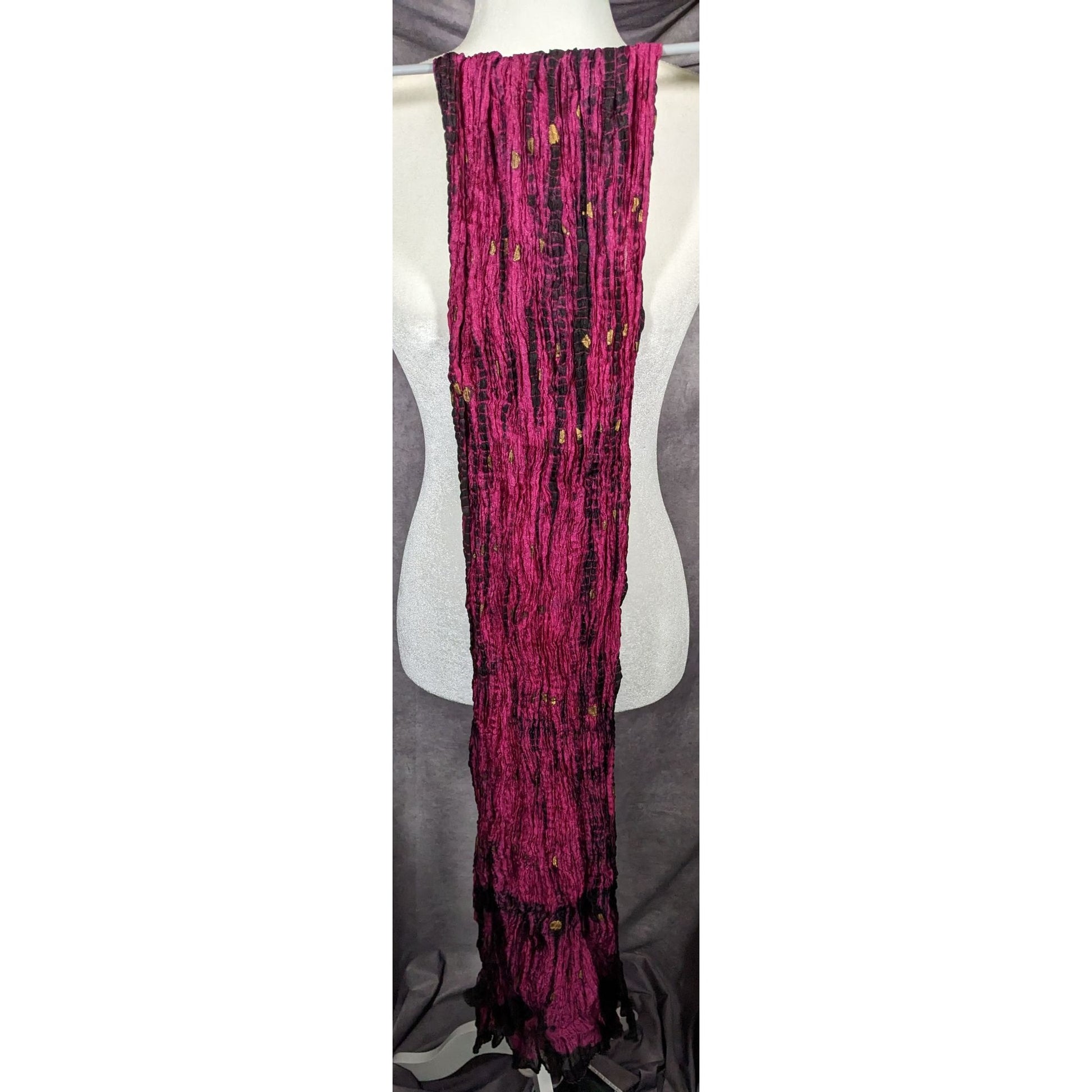 Bohemian Pink And Black Tie Dye Crinkle Scarf With Gold Accents