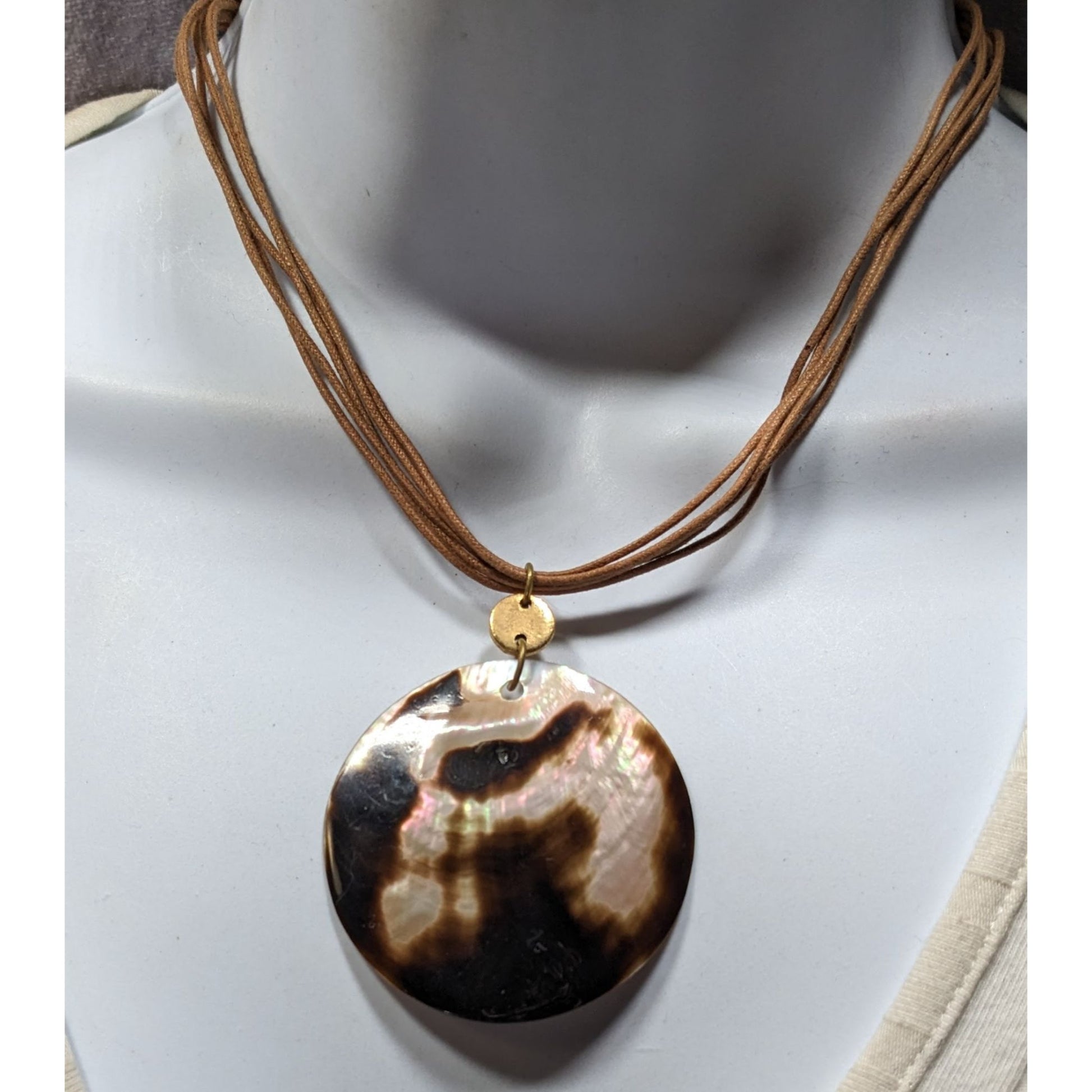 Bohemian Shell Pendant Necklace Brown And Cream On Tan Cord