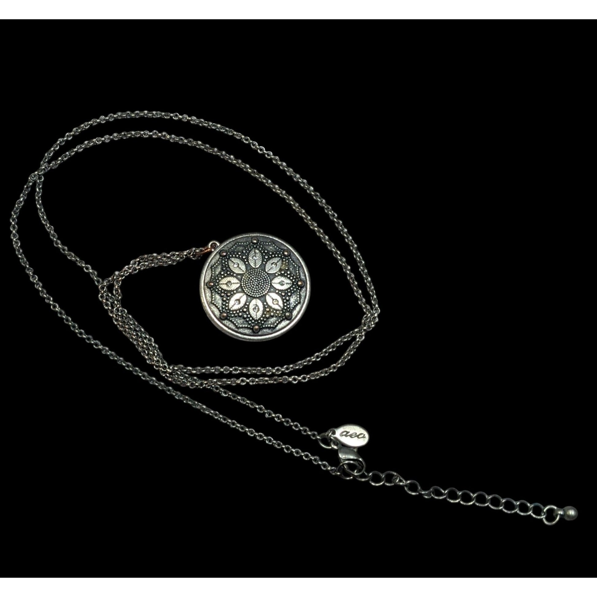 Bohemian Vintage Y2K AEO Floral Engraved Silver Tone Pendant Necklace