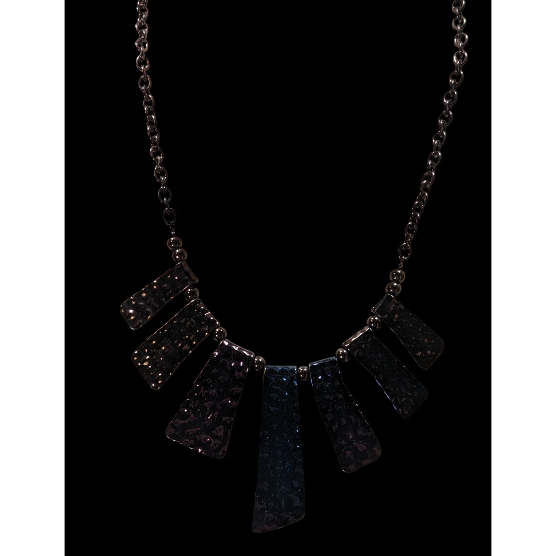 This stunning Brutalist anodized bib necklace features a textured cascade design, adding a bold statement to any outfit. Its unique craftsmanship and modern aesthetic make it perfect for art lovers and fashion enthusiasts alike.