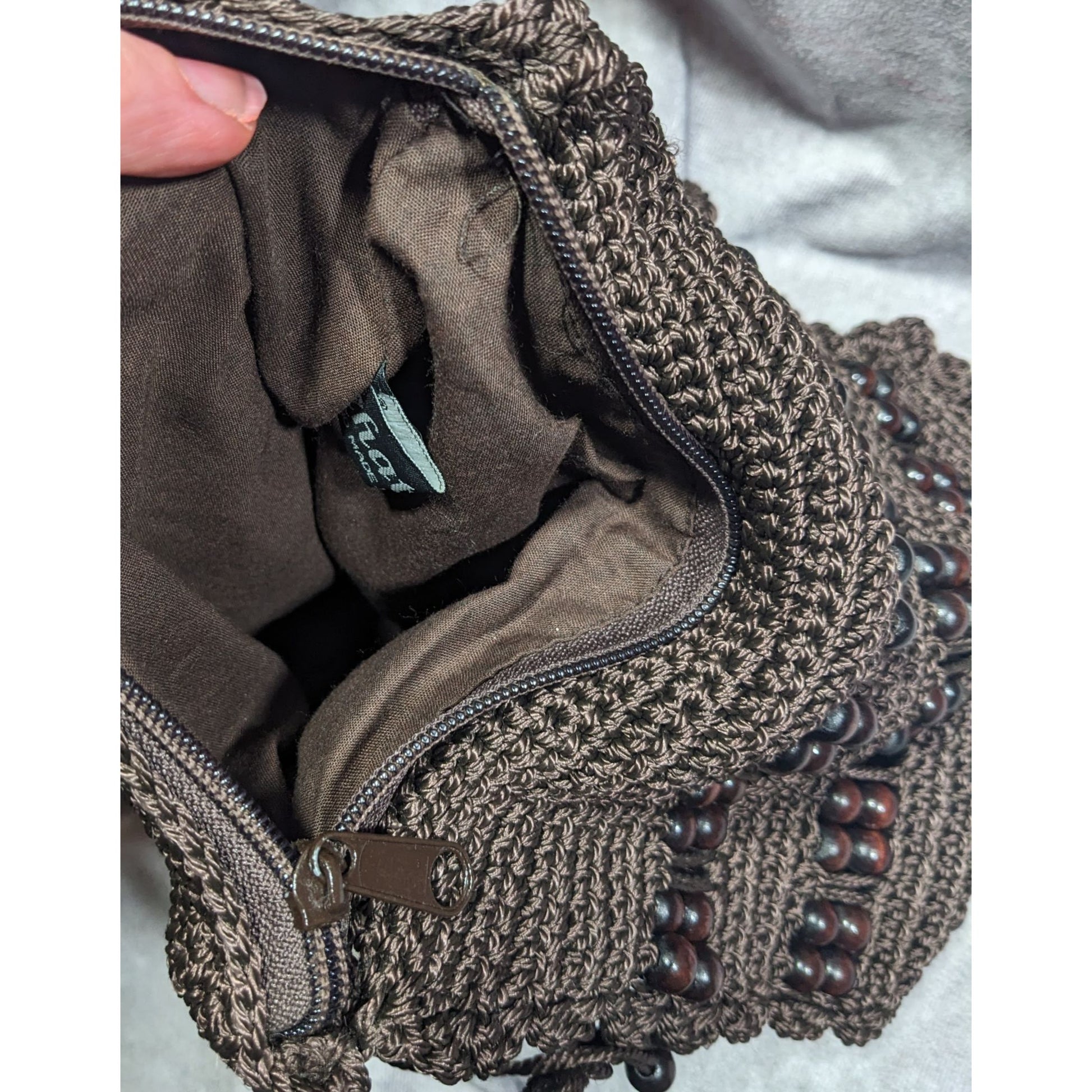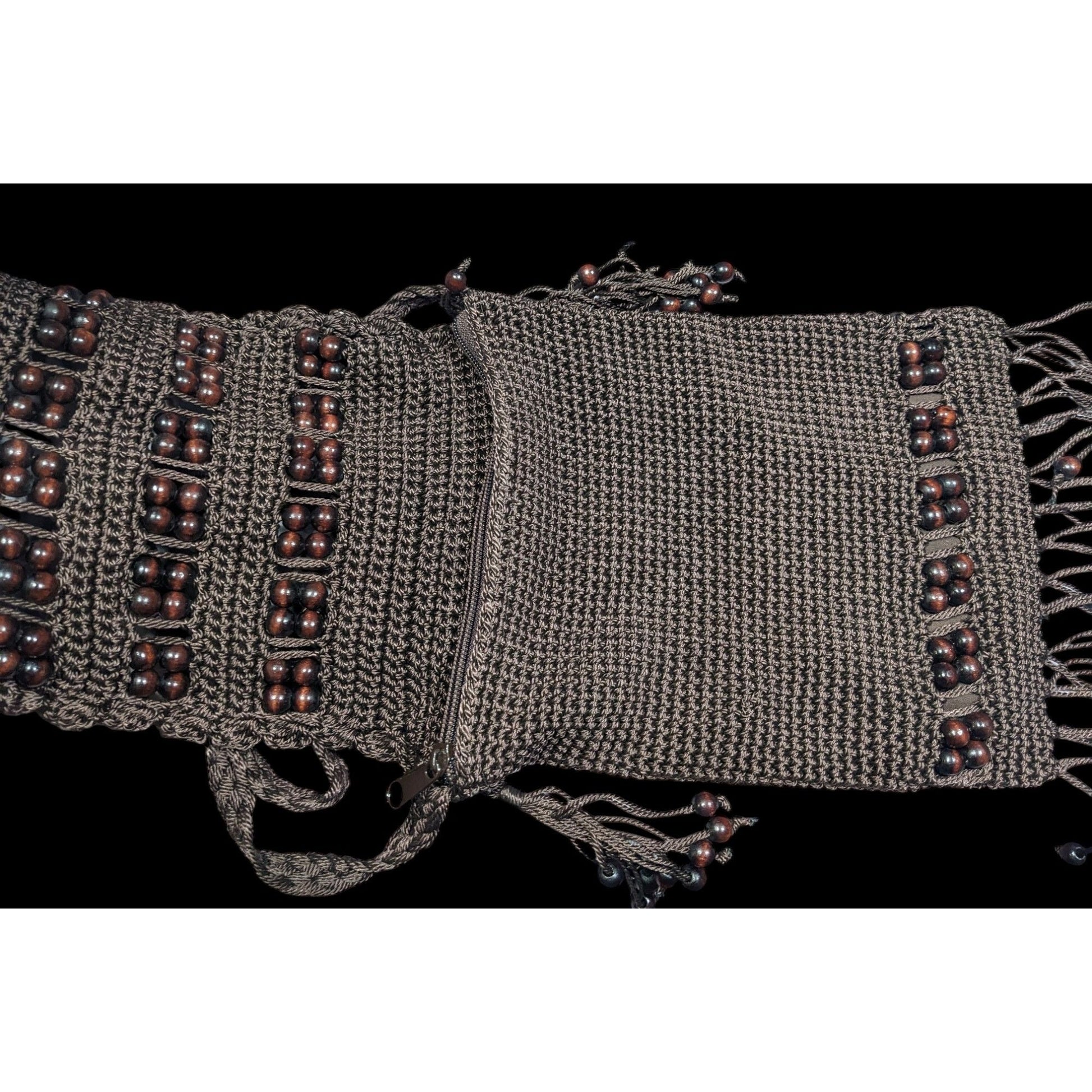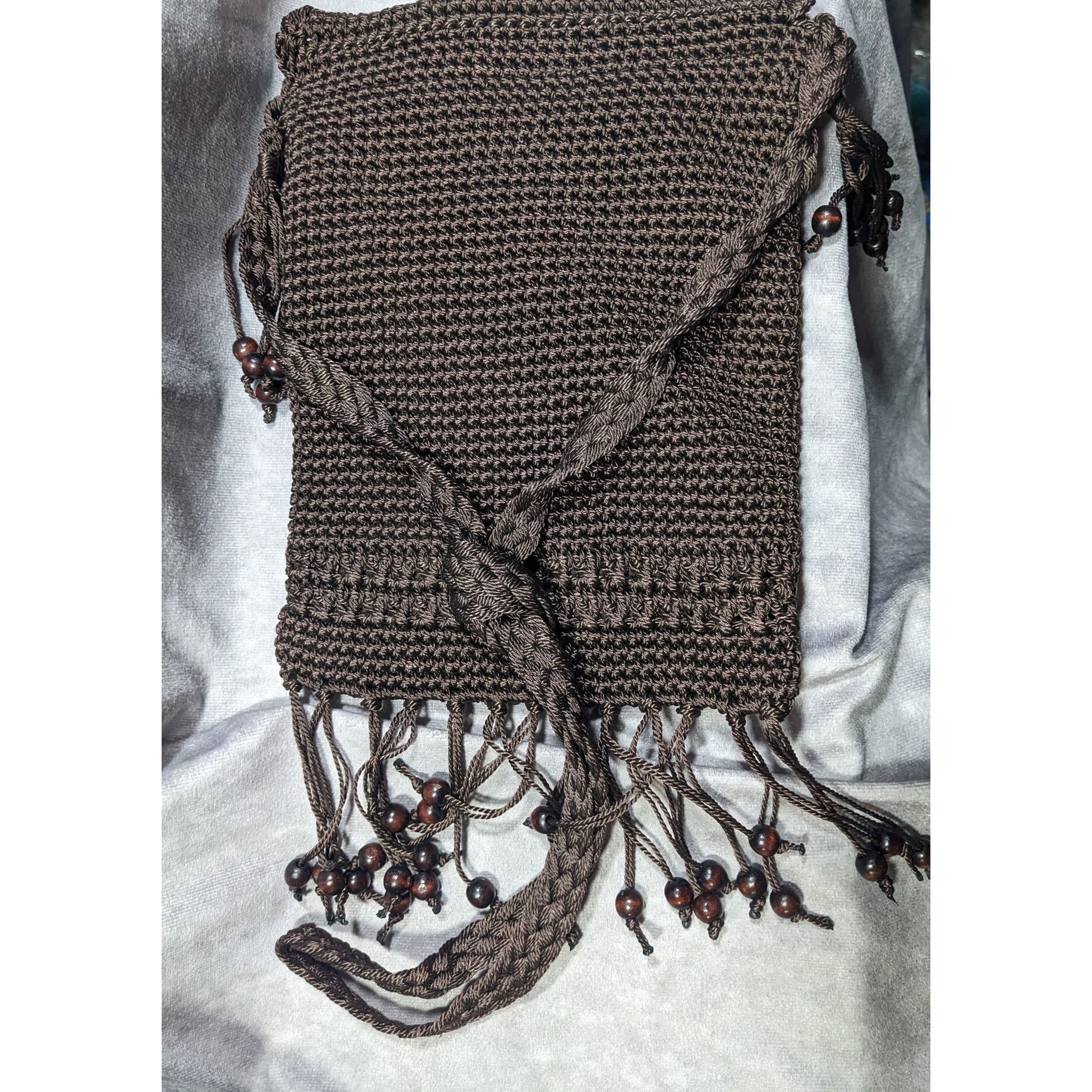Chateau Boho Brown Crochet Beaded Crossbody Bag With Fringe
