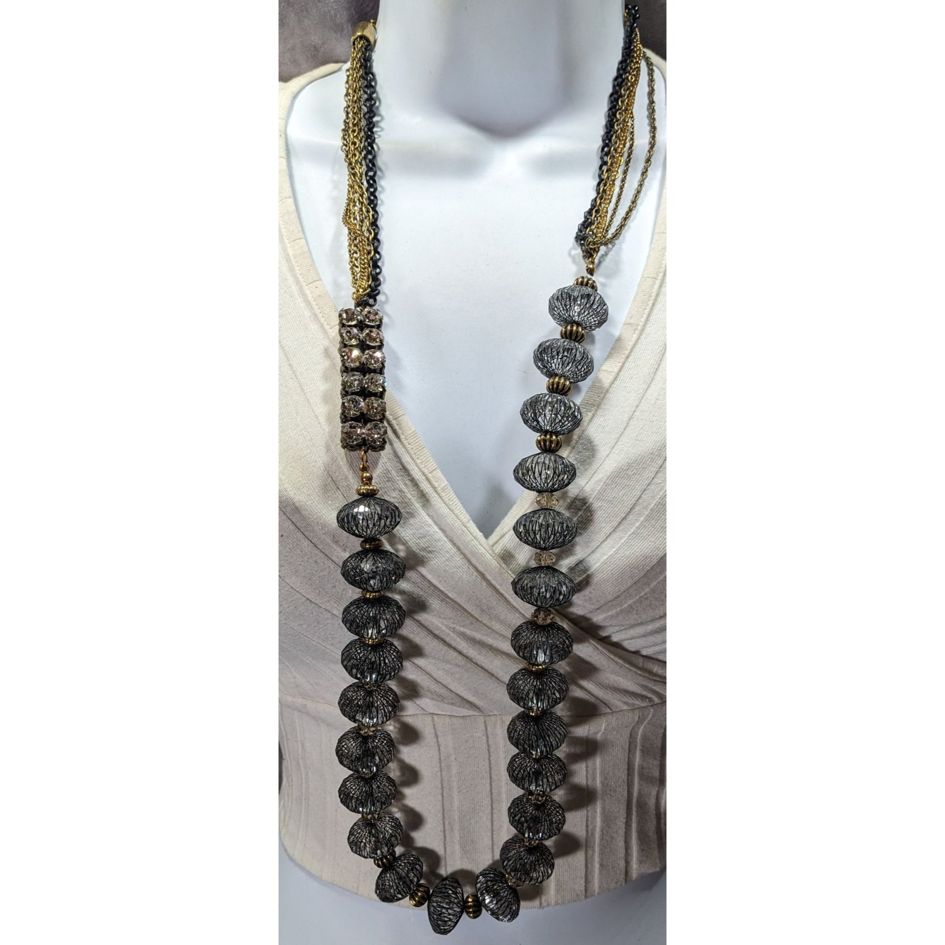 Chico's Chunky Glam Beaded Necklace With Rhinestone Accents