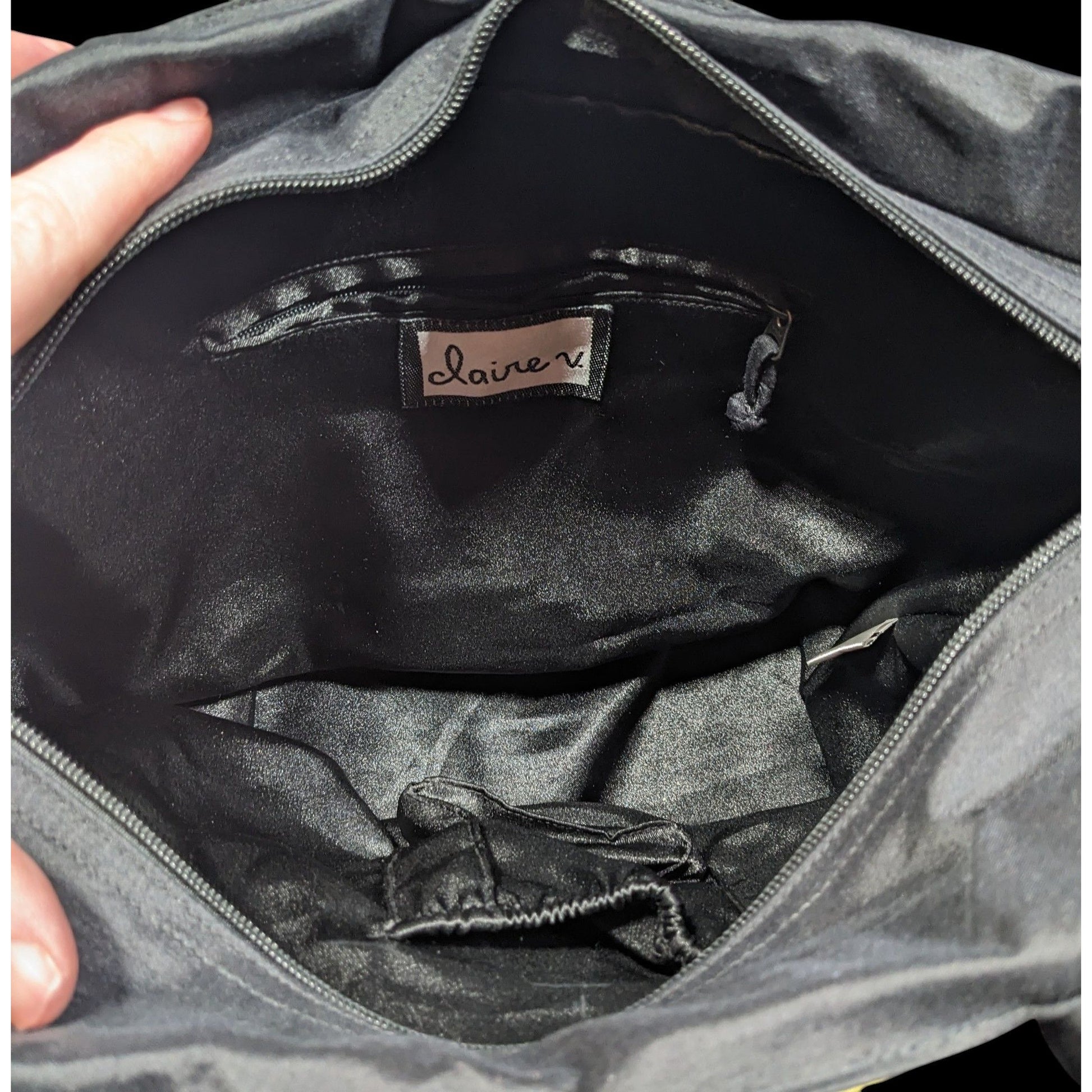 Elegant and versatile, this Claire V bag features exquisite floral embroidery with a stunning blue and gold color shift. Ideal for any occasion, it adds a touch of sophistication to your ensemble.