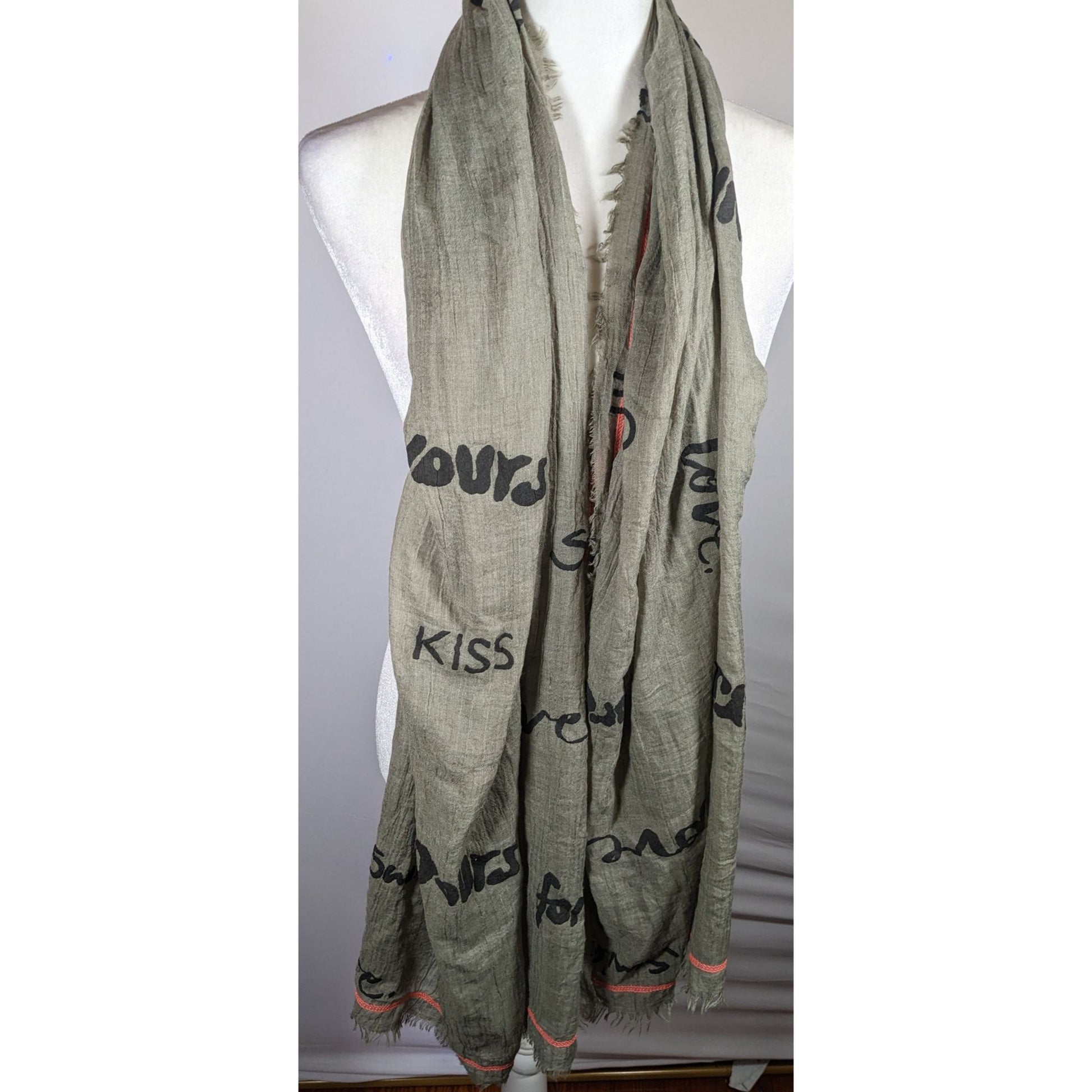 Codello Grey Love Print Scarf With Pink Contrast Stitching