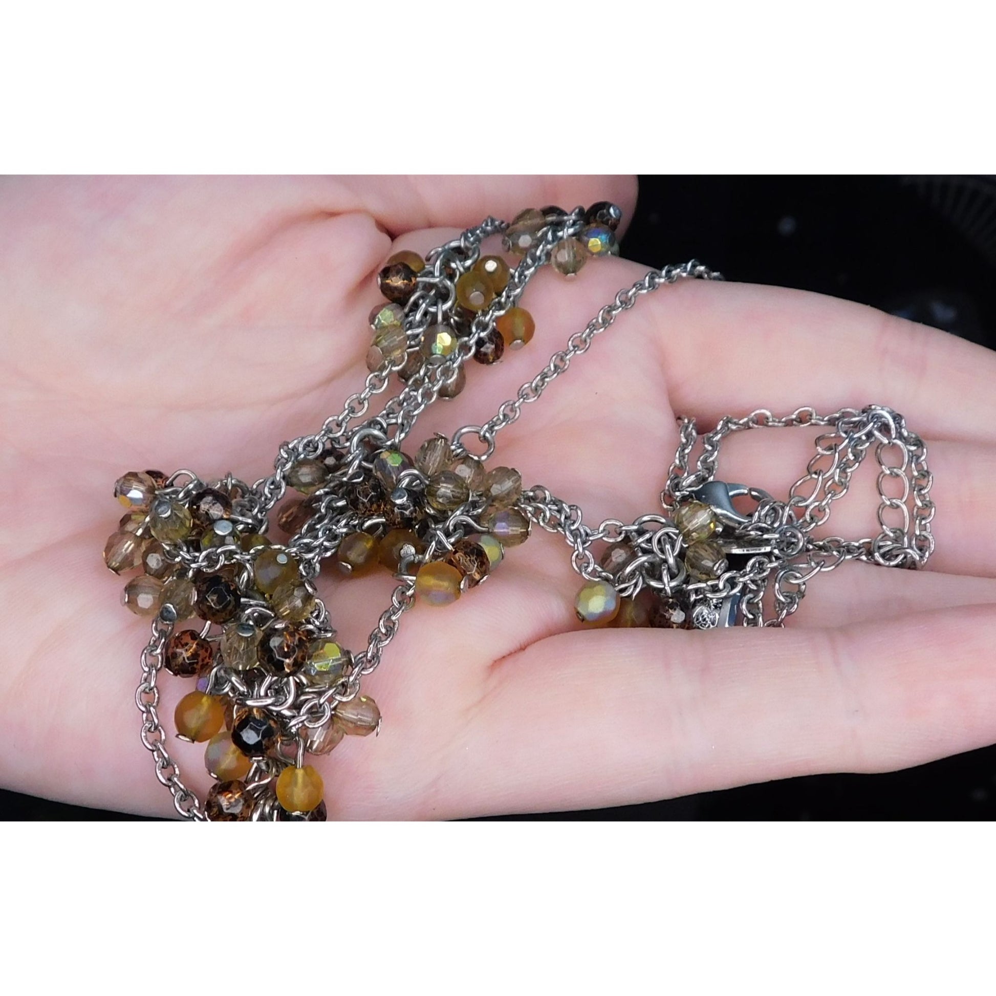 Coldwater Creek Brown Tiered Sparkly Beaded Charm Necklace