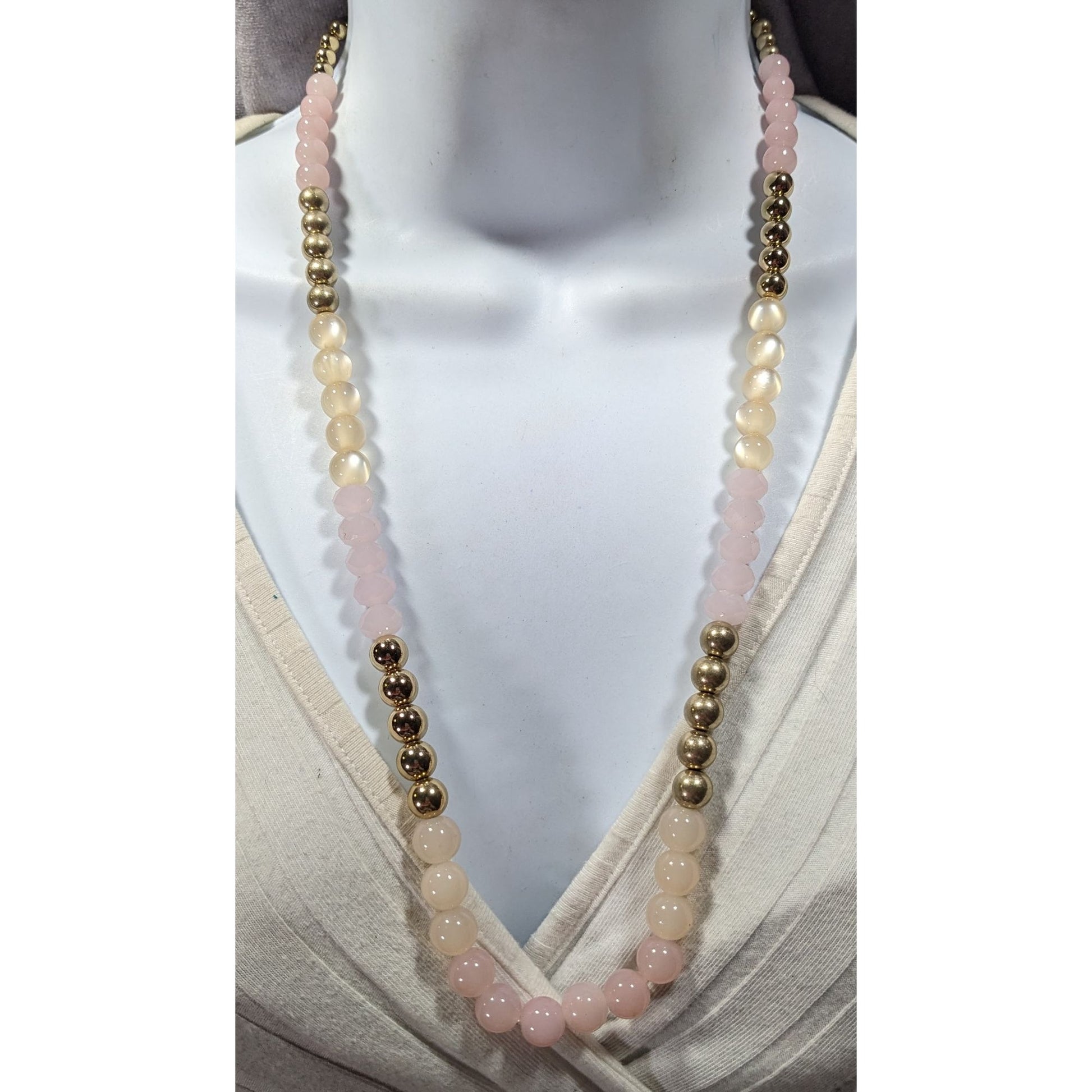 Coquette Retro Pink And Gold Tone Glass Plastic And Lucite Beaded Necklace