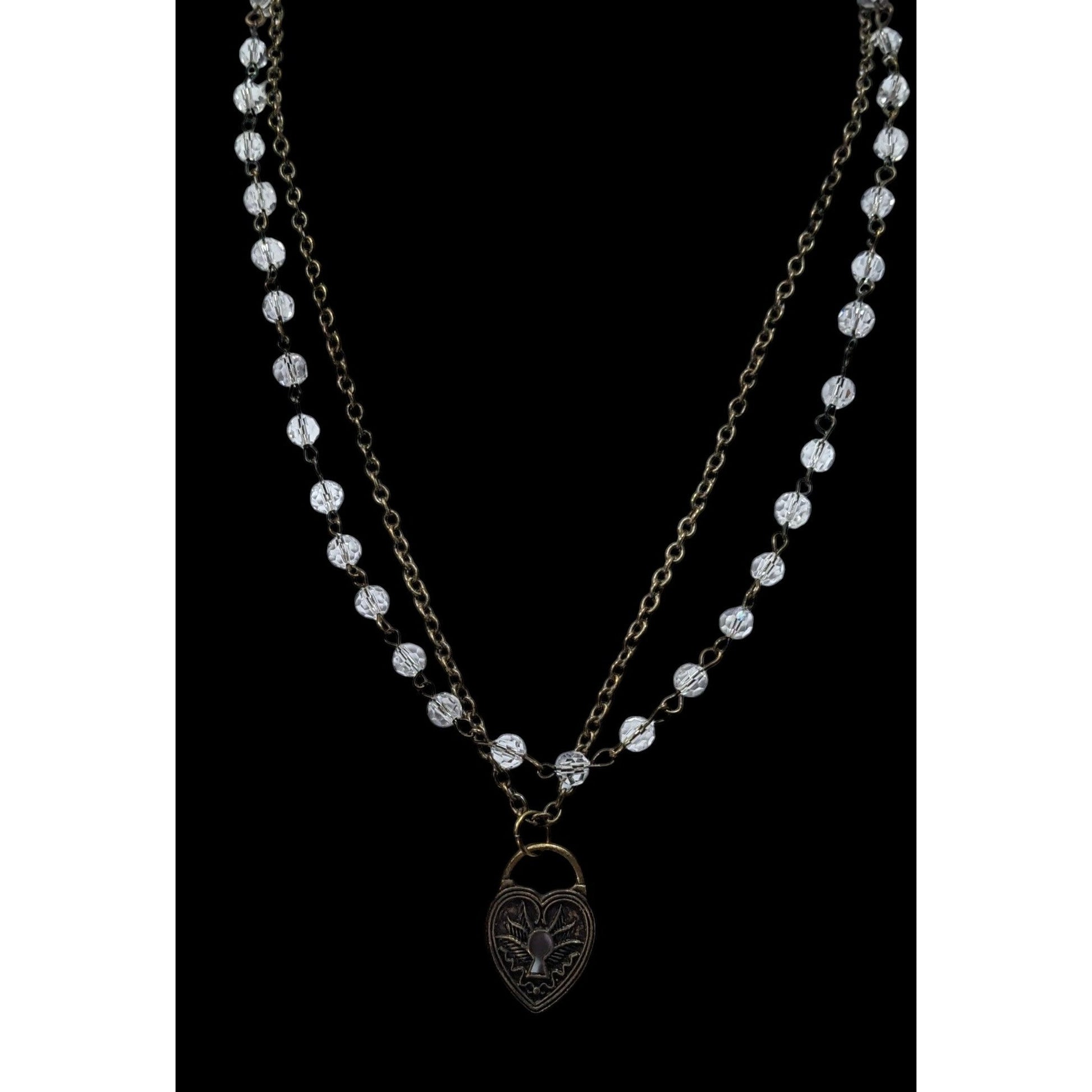 Coquette Steampunk Layered Beaded Heart Faux Lock Necklace