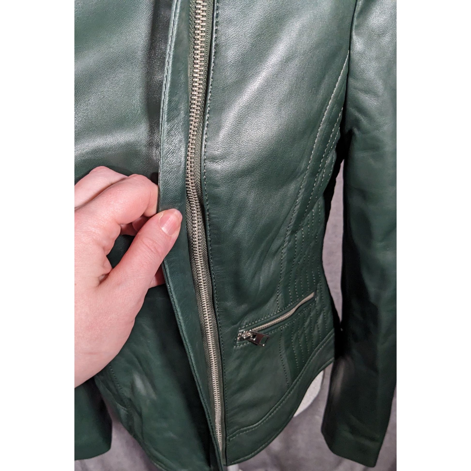 Corbani Green Quilted Shoulder Genuine Leather Moto Jacket Size Medium