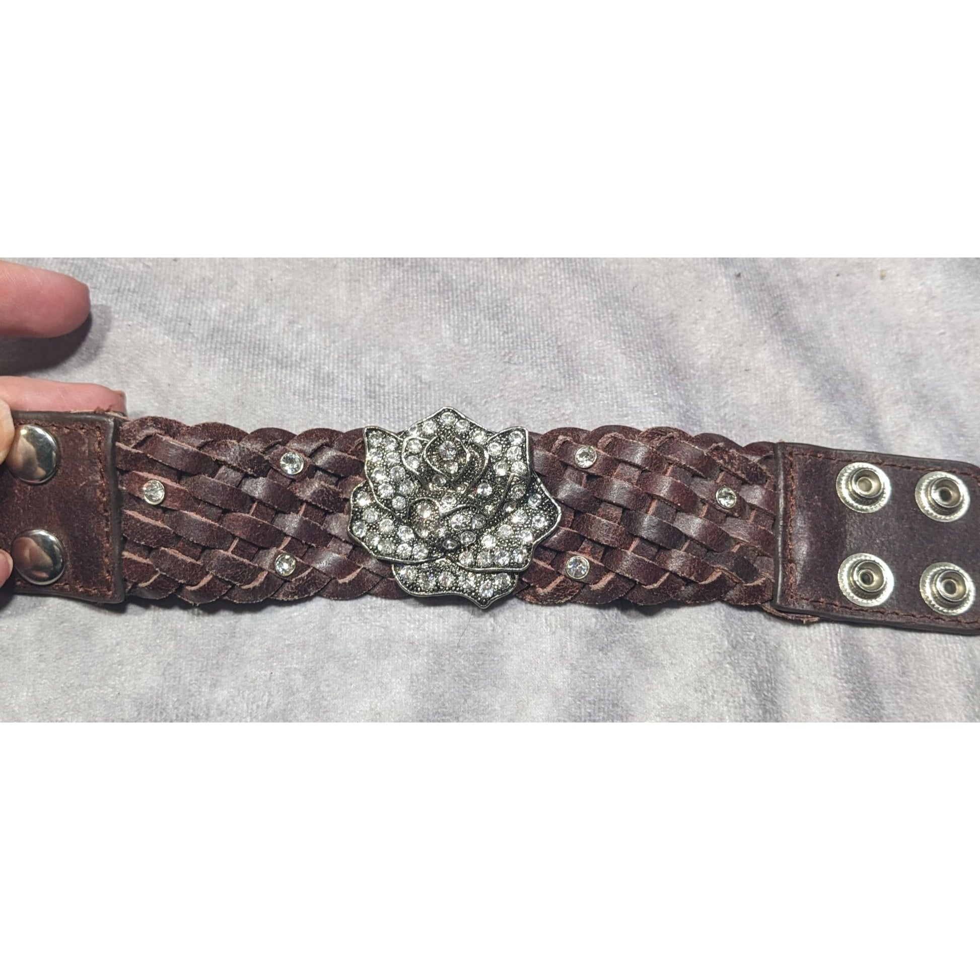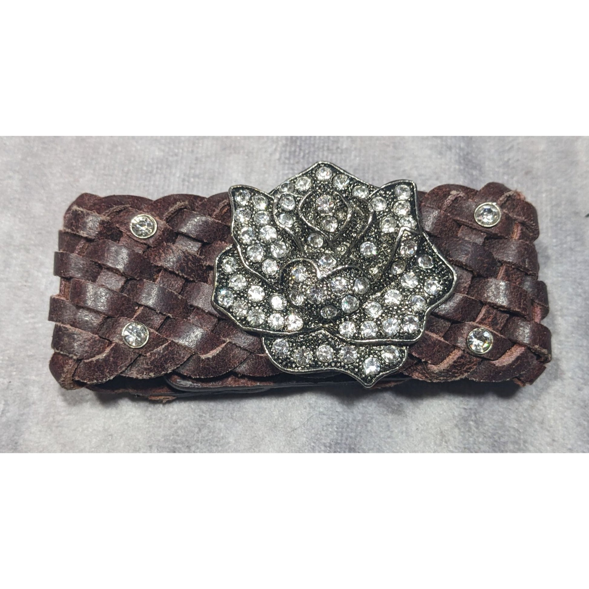 Cowgirl Glam Floral Braided Leather Rhinestone Bracelet
