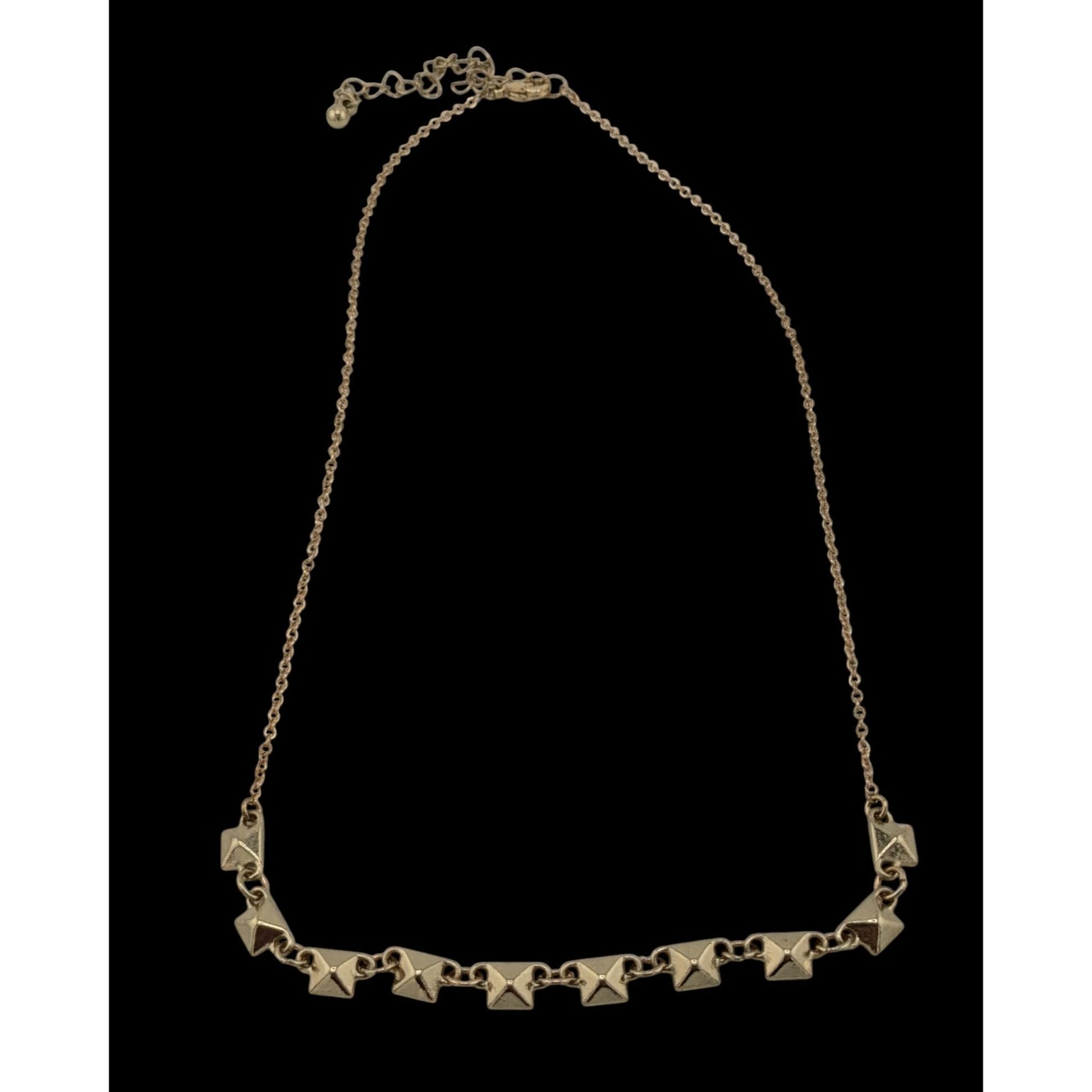 Elevate your style with this dainty pyramid studded gold tone necklace. Perfect for everyday wear or special occasions, its minimalist design adds a touch of elegance to any outfit.